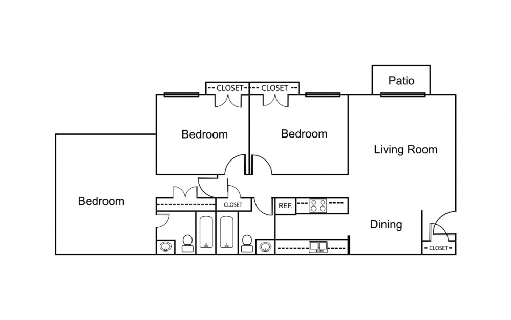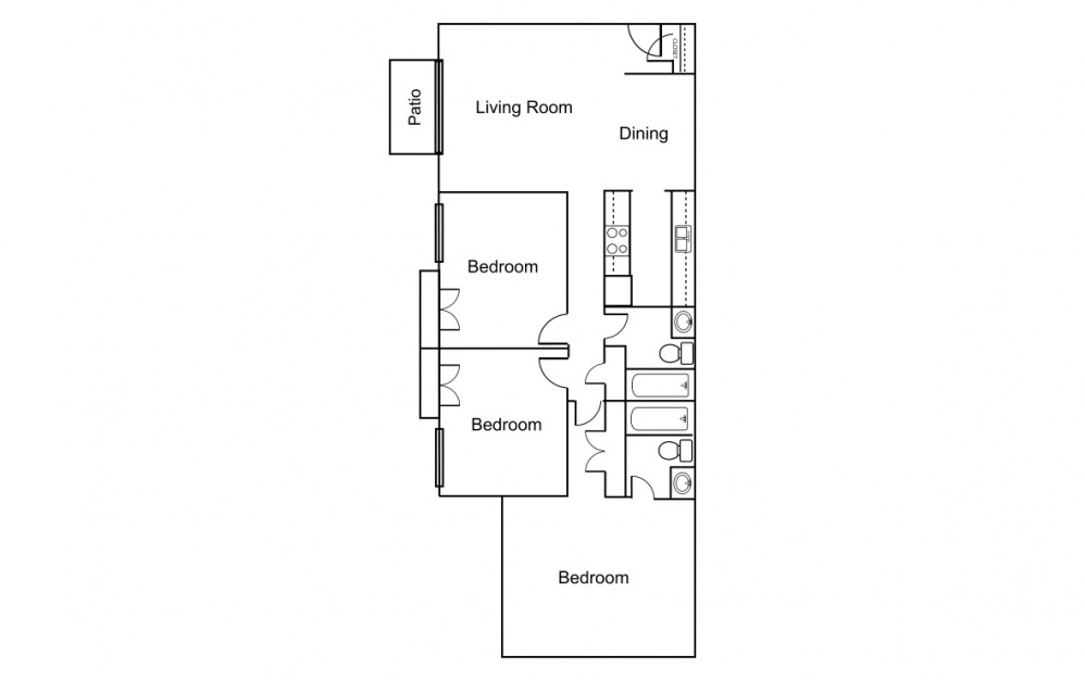 Apartment Model: 3 Bedroom / 2 Bath$1,3503 Bedroom, 2 Bath, 1032 sq ftAvailable Now![]()