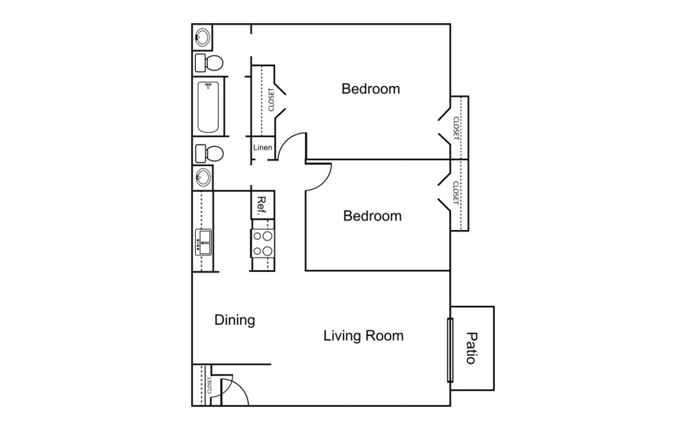 1 Bedroom / 1 Bath - Floorplan 1 2 Bedrooms