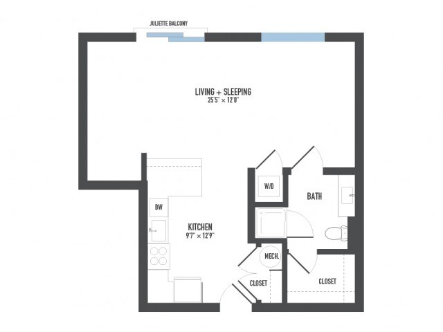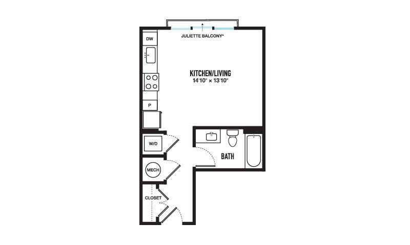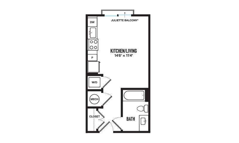Studio, 1 Bath, 345-380 sq ftAvailable NowModel Gallery