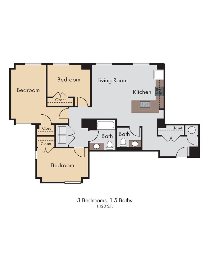 3 Beds, 2 Baths, 1120 sq ftModel Gallery