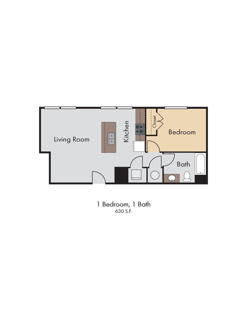 1 Bedroom Tax Credit*** - Floorplan 1 One Bedroom