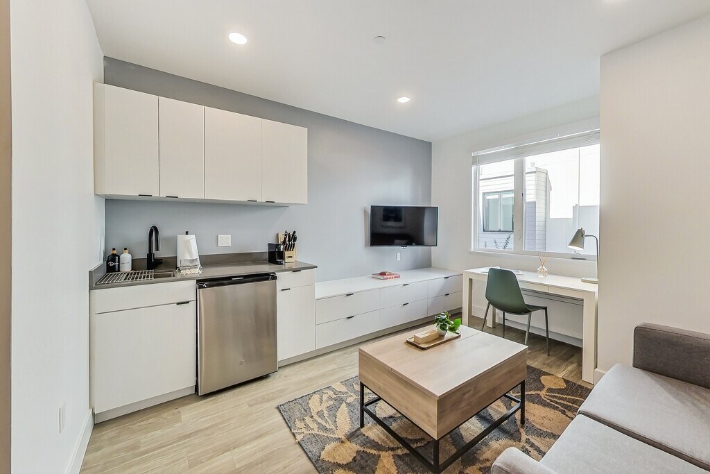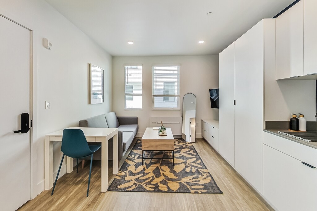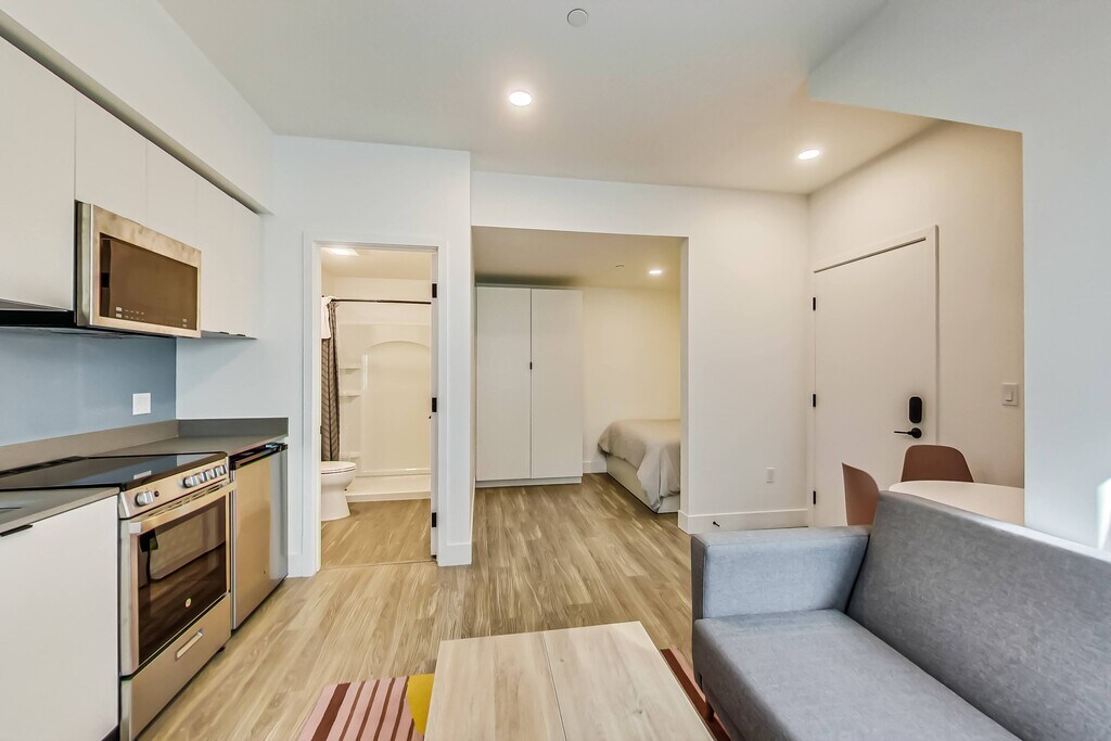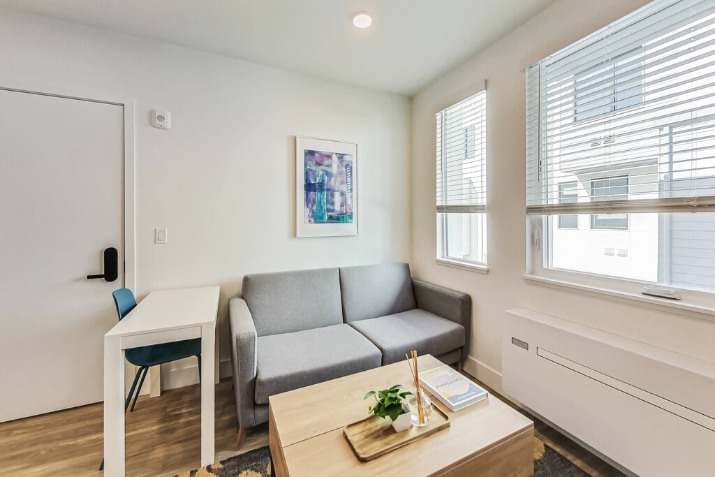 Living at ArtHaus Brush will place you among quiet residential streets just steps to downtown's beating heart. The Fox and Paramount Theaters are blocks away, and an incredibly diverse array of bars and restaurants thrive here alongside an eclectic collection of local boutiques. Several farmer's markets are also a short walk away, as is the monthly Oakland Art Murmur. Residents of ArtHaus Brush enjoy immediate access to the 580, 880, and 980 freeways. The 19th Street BART station is a 10-minute walk, passing by several AC Transit stops. You can be in San Francisco in the time it takes to drink a cup of coffee! ArtHaus Brush offers fully furnished studio apartments that are built for you. The community consists of several townhomes, each containing five apartments. A central courtyard with outdoor dining connects the buildings while offering a tranquil respite. Each fully furnished studio includes a kitchenette with quartz counters, ample storage, a luxurious Nectar mattress, a comfortable sofa, and a smart TV. Other thoughtful turnkey touches, from WiFi and utilities already activated, means you just need to bring your toothbrush. Contact us today to schedule a tour to view our model residences and to discuss our flexible lease terms and approachable rents. You'll quickly see we're just better in your budget! Apartment Highlights Spacious built-in storage Modern kitchenette with quartz countertops Individually controlled AC & heating Large, double-paned windows for abundant natural light In-apt washer + dryer Community Highlights Tranquil courtyard & dining area Dedicated parking available Bike storage Latch keyless entry Pet-friendly Neighborhood Highlights Proximity to the best of historic downtown as well as up-and-coming West Oakland Close to award-winning dining Immediate access to the 580, 880, and 980; blocks to BART, + AC Transit