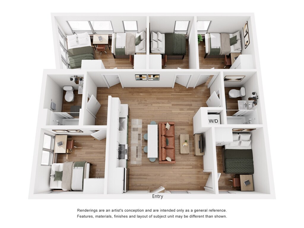 D1 - Floorplan 2 Apartment Unit: PrivateApartment Model: D1$1,8754 Bedroom, 2 Bath, 850 sq ftAvailable June 1, 2026Apartment Unit: PrivateApartment Model: D1$1,8754 Bedroom, 2 Bath, 850 sq ftAvailable August 1, 20265 Bedrooms