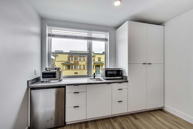 Located in a quiet residential neighborhood, ArtHaus Linden is where serenity meets city energy. Raimondi, De Fremery, Memorial, and Lowell Parks are blocks away for exercise, picnics, or outdoor hangs. Enjoy immediate access to the 580, 880, and 980, while the West Oakland BART is just blocks away. This is your ideal launch pad for exploring the bay and beyond. Find your perfect landing pad in these private, fully furnished studios with modern style and tech enabled living. Community Amenities Utilities already on, including Wi-Fi Dedicated parking (subject to availability) Complimentary laundry in building Bike storage Courtyard with BBQs Package lockers Close to BART and AC transit Professionally managed Custom mural by Oakland based artist Hueman Residence Amenities Fully furnished Spacious built-in storage Modern kitchenette with quartz countertops Individually controlled AC & heating Large, beautiful double-paned windows Virtual doorman Latch keyless entry Private patio in select residences Pet friendly