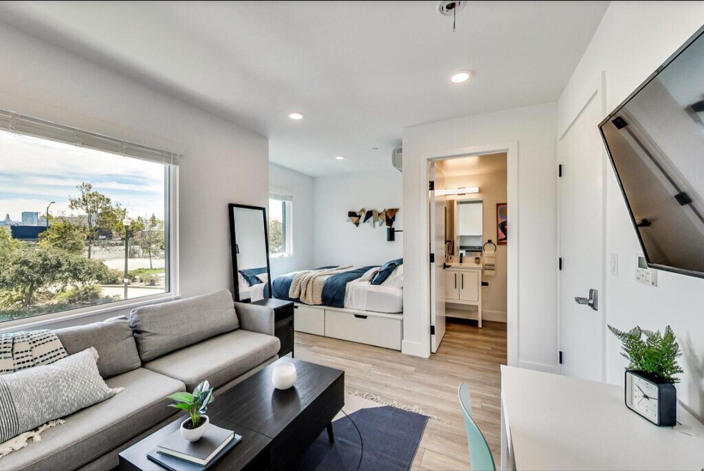 ArtHaus Mandela is a modern, design forward community rooted in a growing neighborhood of West Oakland. Taste the city in newly opened taprooms and the West Oakland Farmers Market and Prescott Night Market, then work up a sweat in the country's largest indoor climbing gym. Hop on the bike path right outside, or take a quick walk to coffee shops and restaurants nearby. You're just 5 minutes from BART for easy access to everywhere in the bay. These fully furnished studio apartments make move in a breeze you're home from the moment you walk in the door. Apartment Amenities - Private kitchenette with quartz countertops - Individually controlled AC and heating - Unfurnished/furnished studios available - Abundant natural lighting through large, double paned windows - Views of Downtown Oakland!* - Private Patio/Balcony* Community Amenities - Dedicated parking (subject to avail) and offsite parking with gym access! - Free Laundry for all residents! - Community kitchens with stainless steel appliances - Bike storage - Package Concierge via Luxor One - Tight-knit community ideal for meeting new people and networking