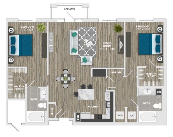 1 Bed, 1 Bath, 1107 sq ftModel Gallery
