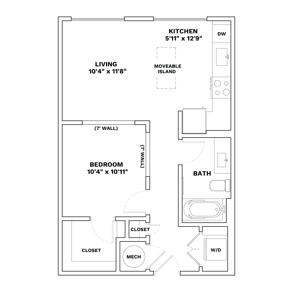 Apartment Model: 0x1 - 410sqft -Micro M1 - EdieFrom $980Studio, 1 Bath, 410 sq ftAvailable NowFloor plans are artist's rendering. All dimensions are approximate. Actual product and specifications may vary in dimension or detail. Not all features are available in every rental home. Please see a representative for details.