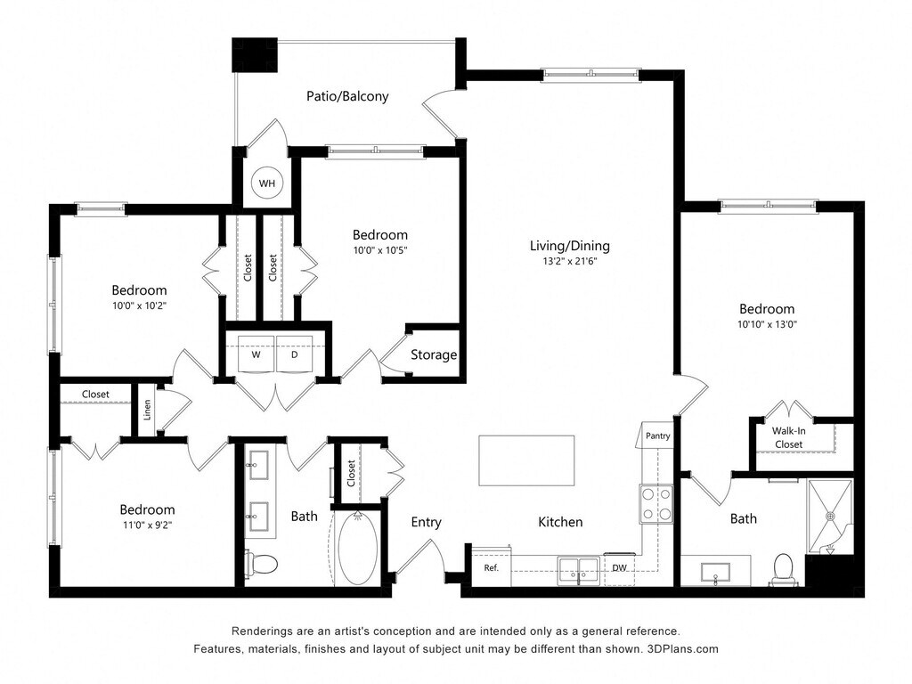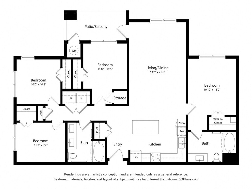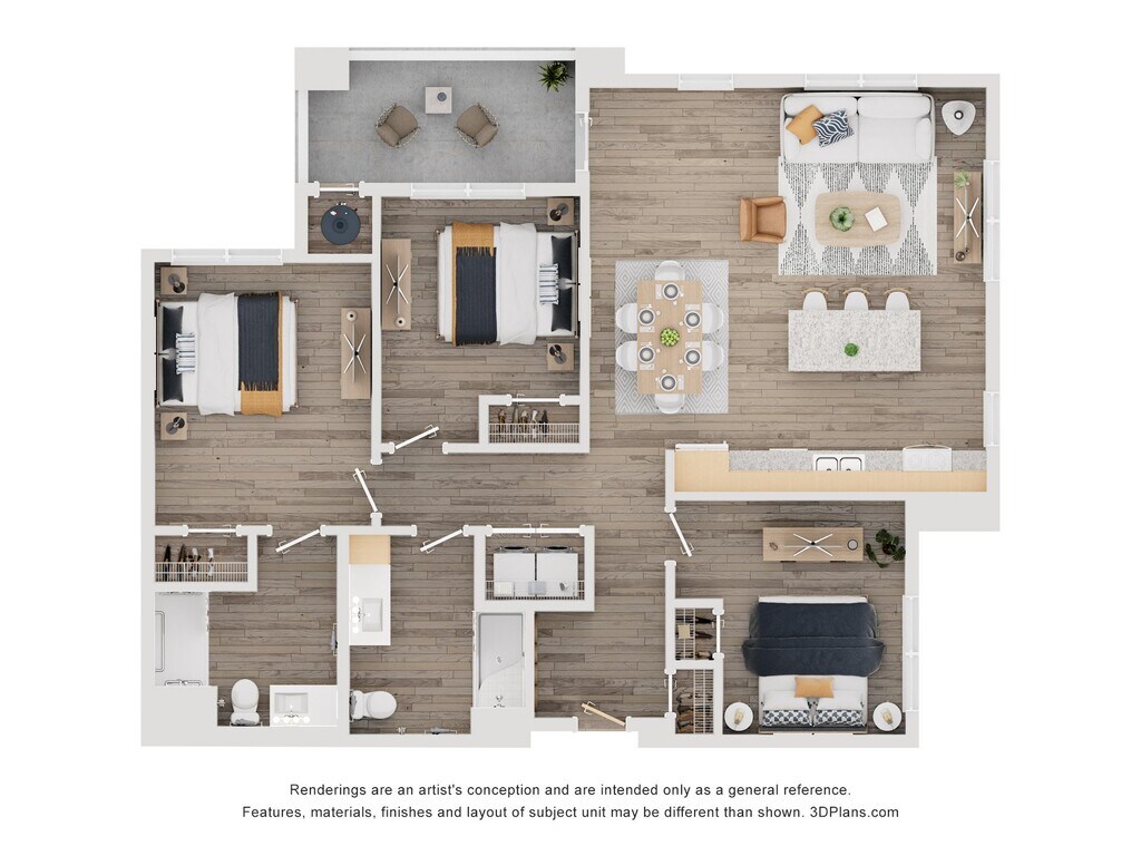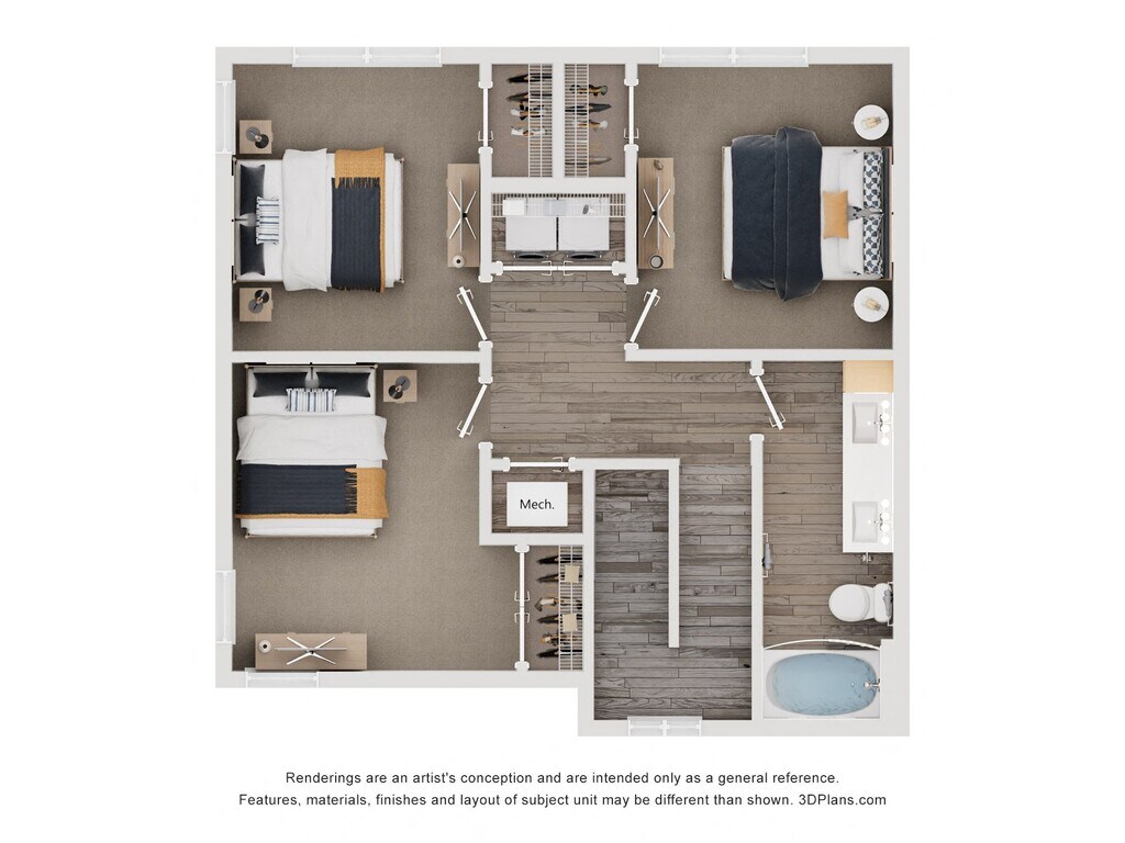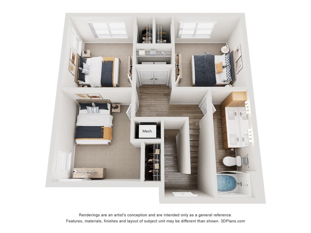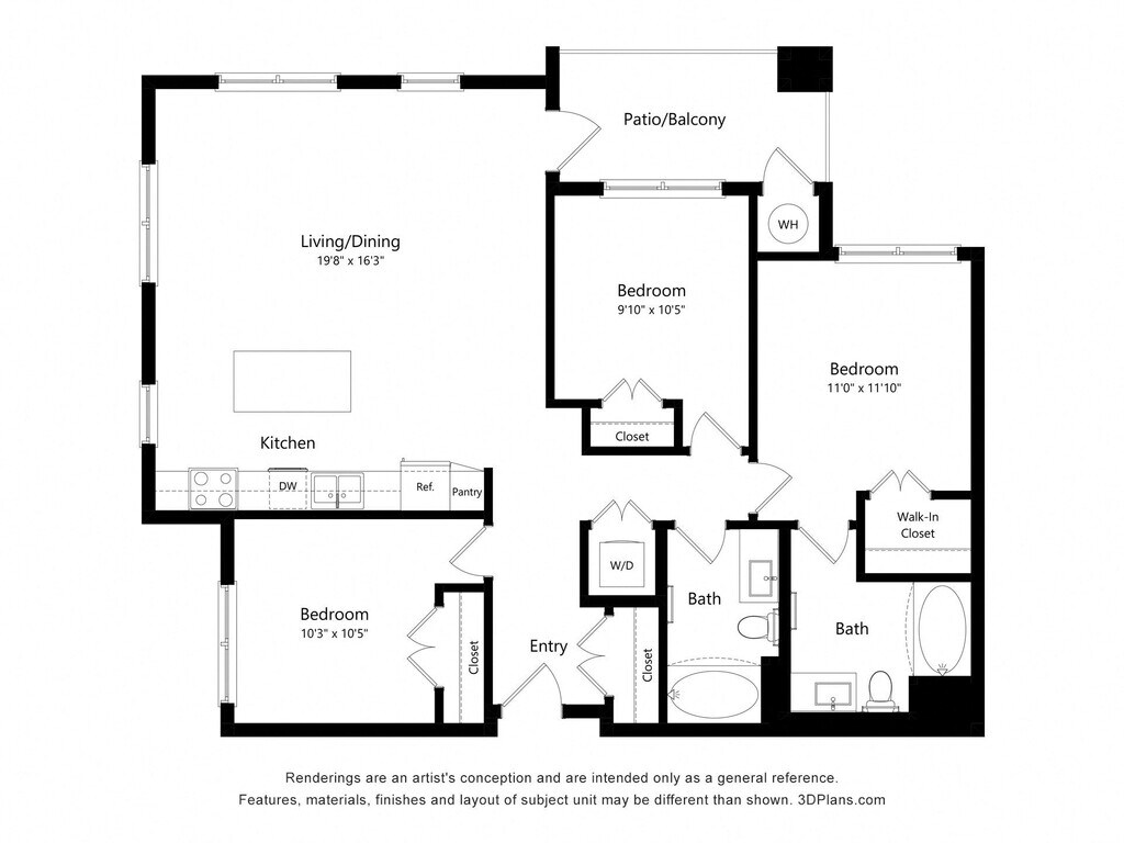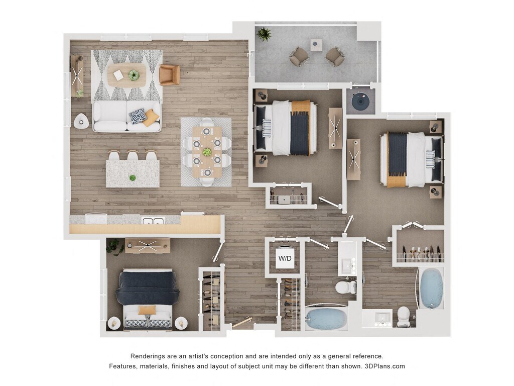 Apartment Model: 3AA3 Bedroom, 2 Bath, 1156 sq ftAvailable May 1, 2026![]()
