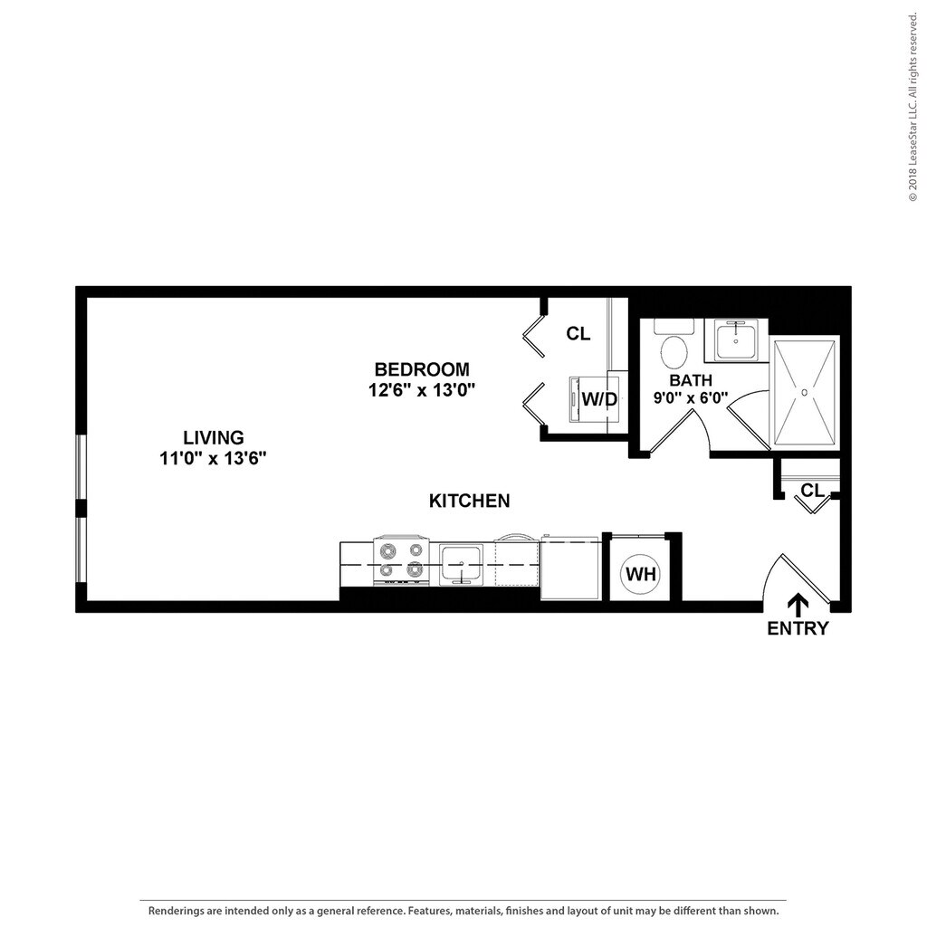 Studio, 1 Bath, 490 sq ftAvailable NowLargest StudioThis is the largest Studio at this PropertyModel Gallery