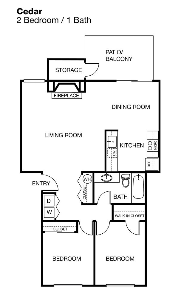 Cedar - Floorplan 1 Apartment Unit: L02Apartment Model: Cedar$2,1402 Bedroom, 1 Bath, 859 sq ftAvailable NowFloorplan Elm