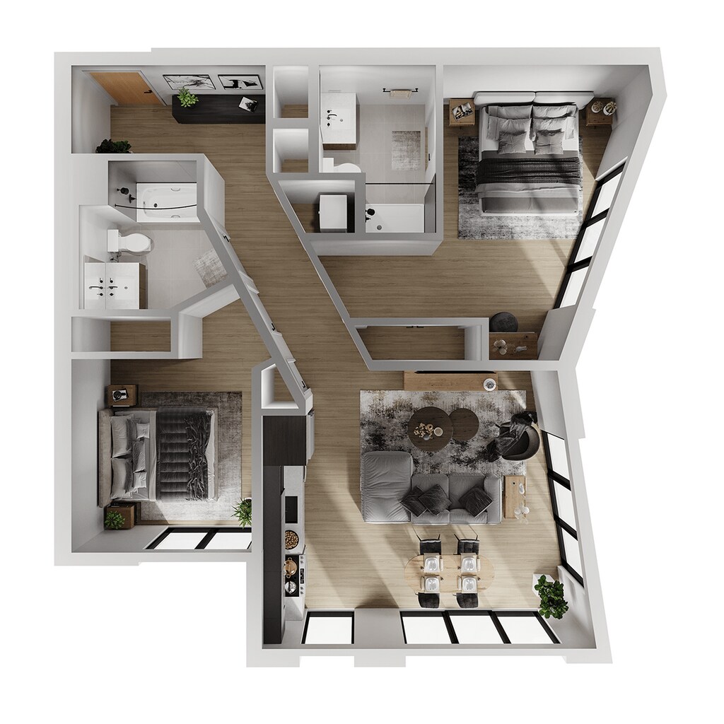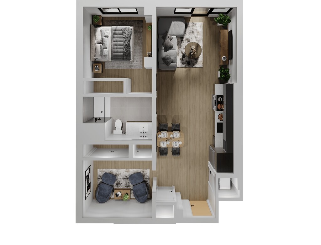 1 Bed, 1 Bath, 684 sq ftModel Gallery