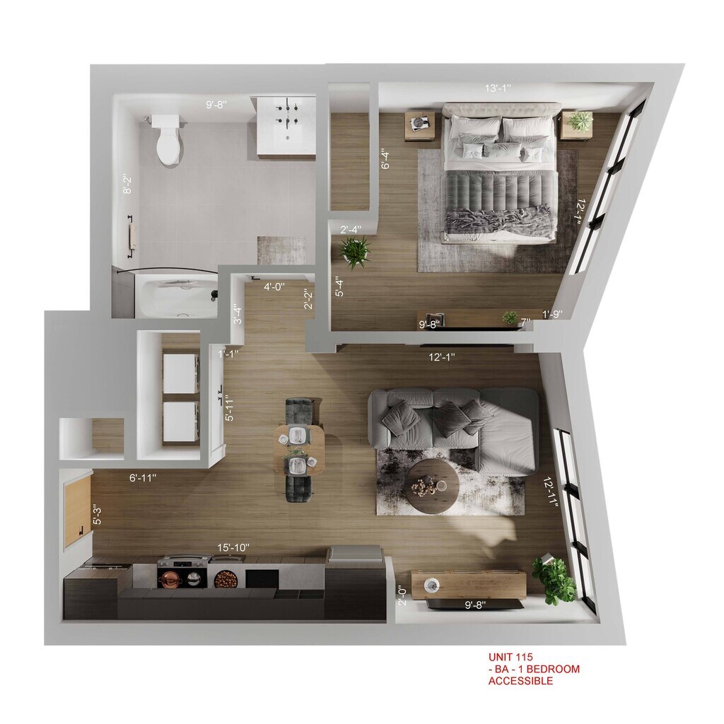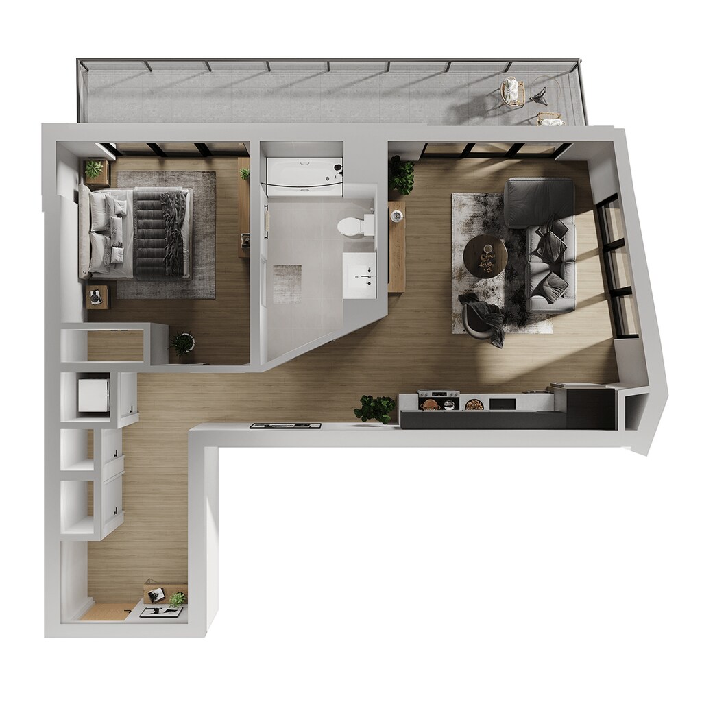 1 Bed, 1 Bath, 571 sq ftModel Gallery