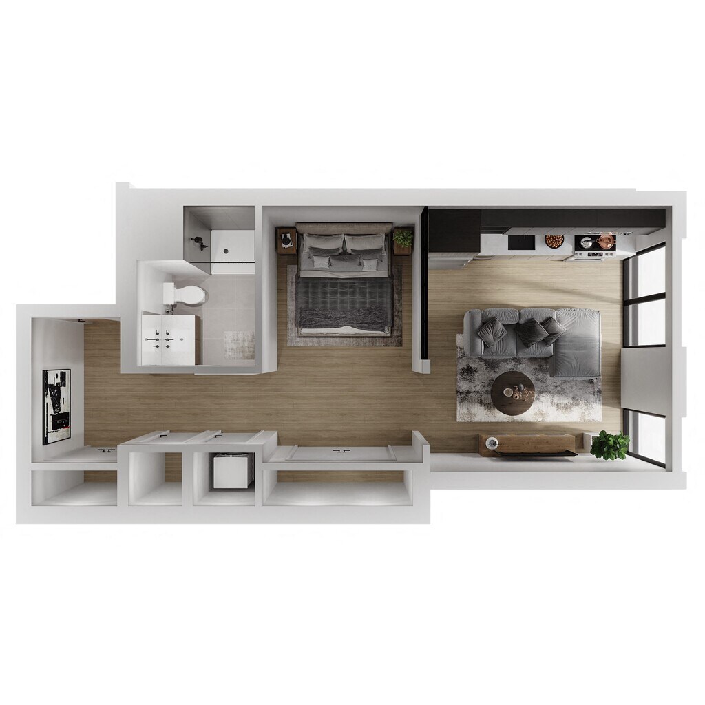 Studio B - Floorplan 2 Apartment Unit: 309Apartment Model: Studio BStudio, 1 Bath, 532 sq ftAvailable February 1, 2026![]()