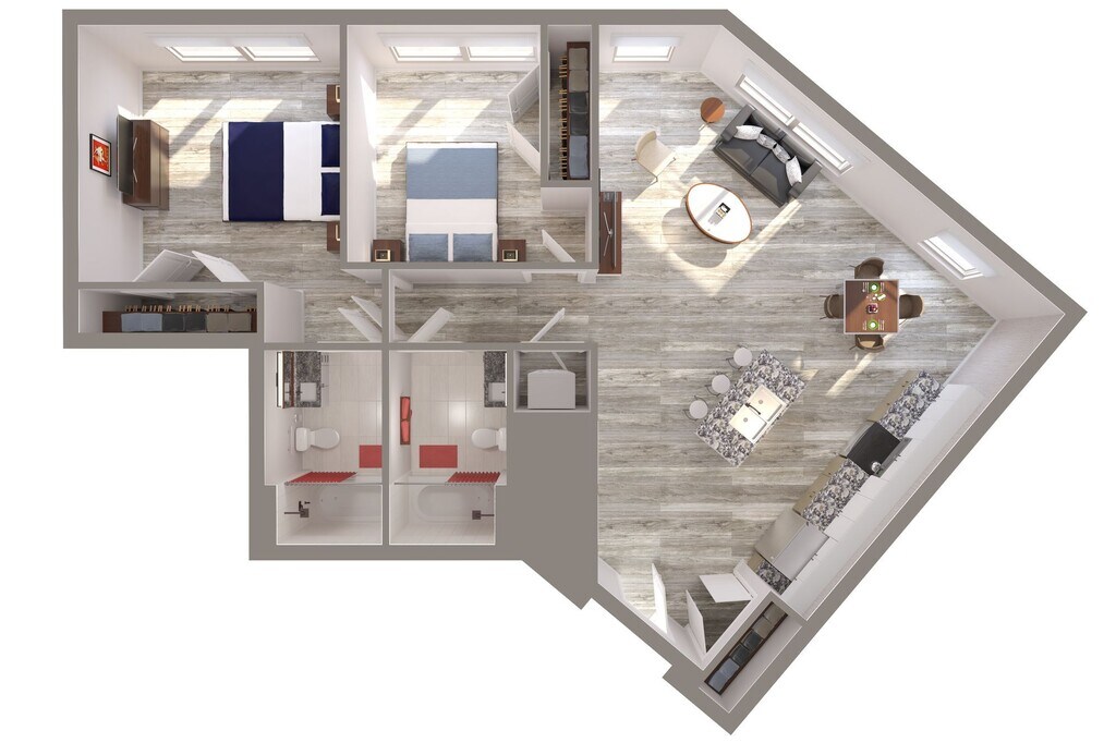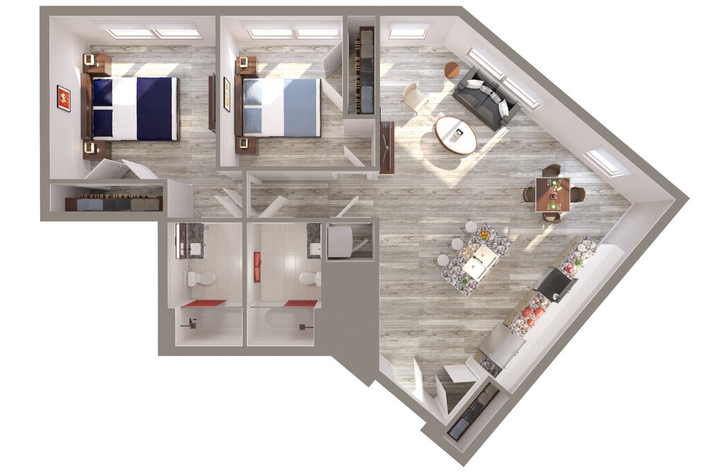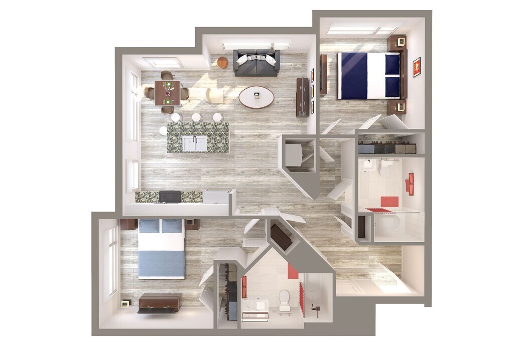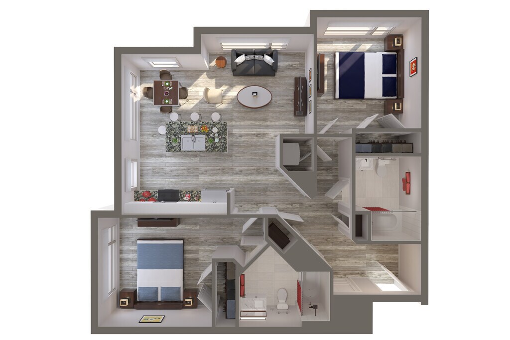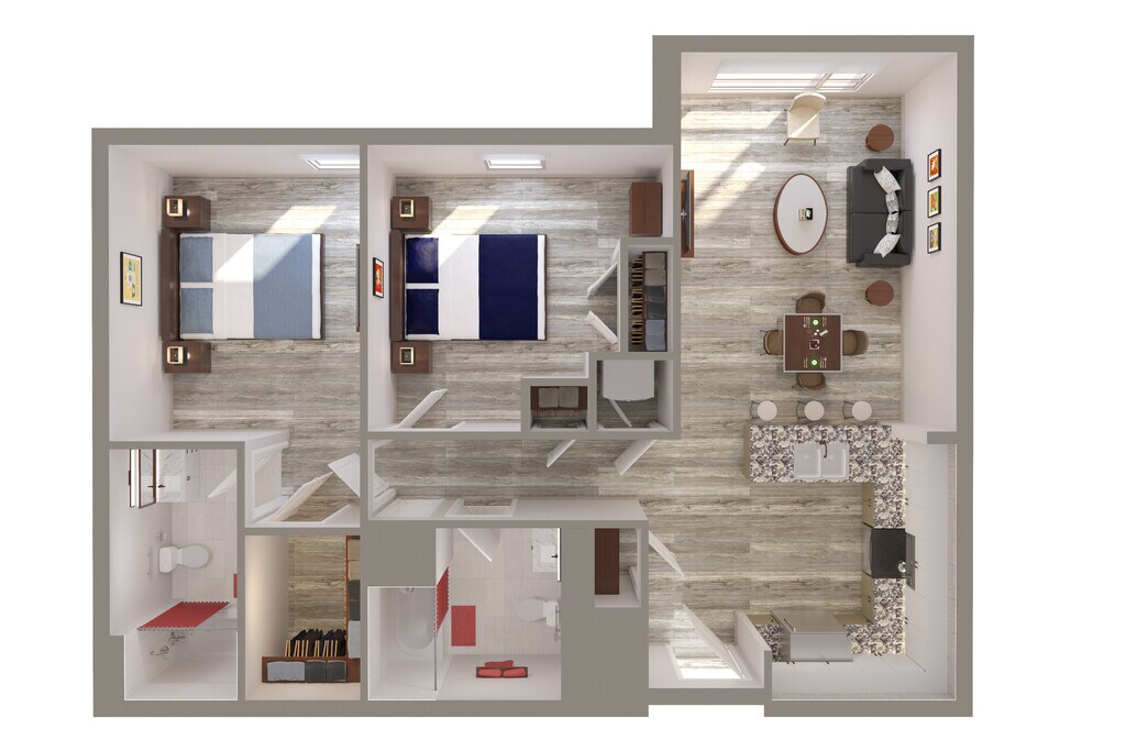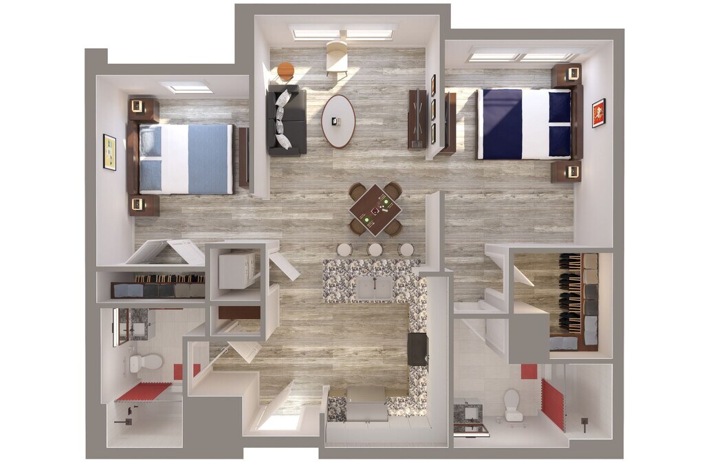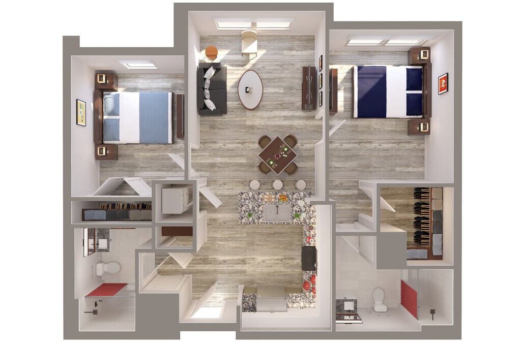 2 Beds, 2 Baths, 985-1009 sq ftModel Gallery