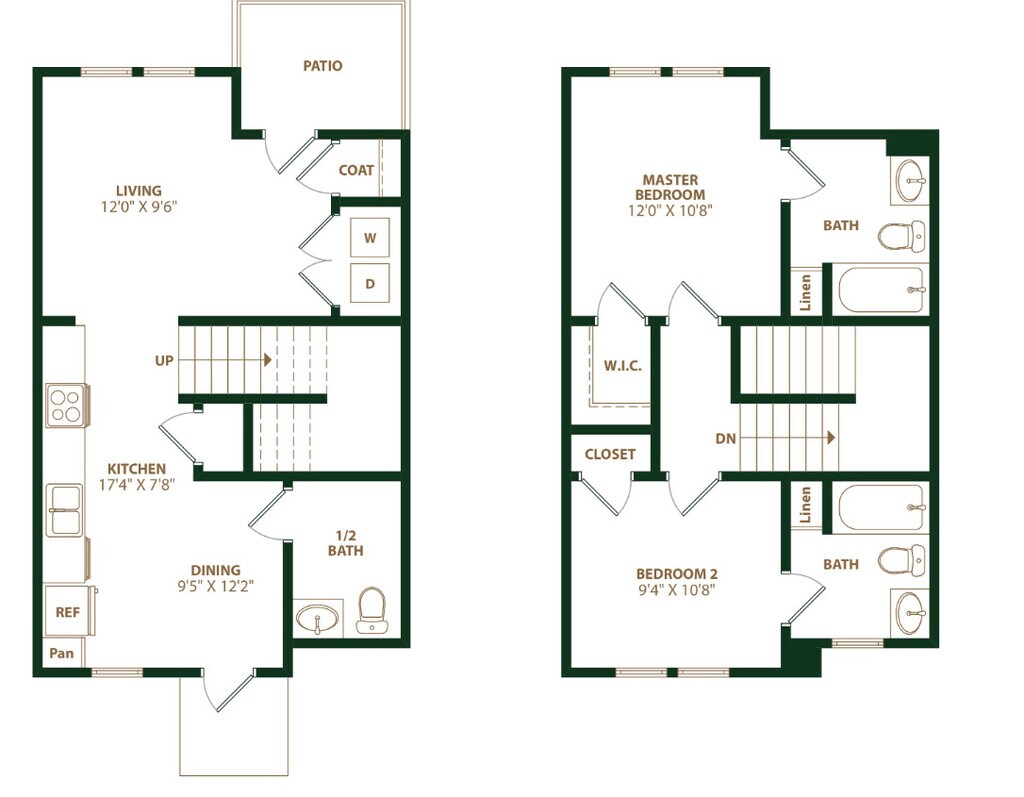 2 Beds, 2.5 Baths, 1020 sq ftModel Gallery