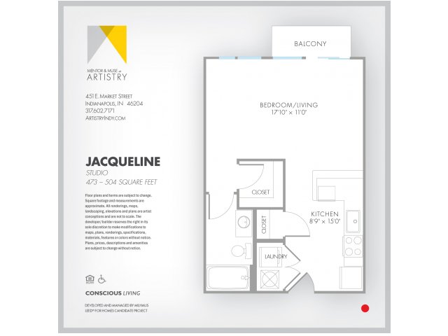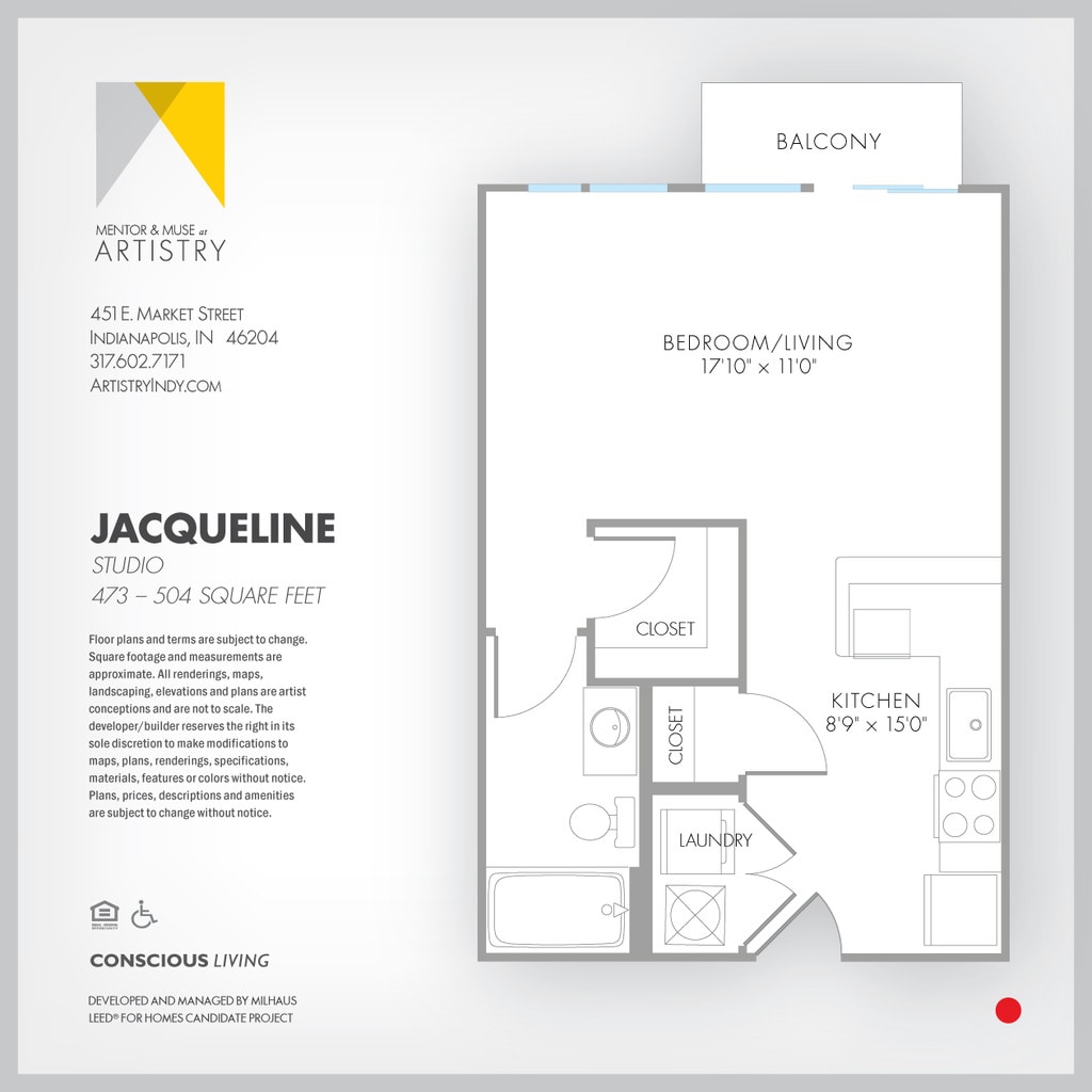 Apartment Model: JacquelineFrom $1,107Studio, 1 Bath, 486-504 sq ftAvailable Now![]()
