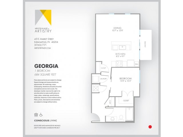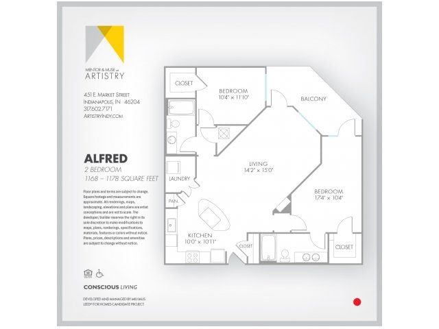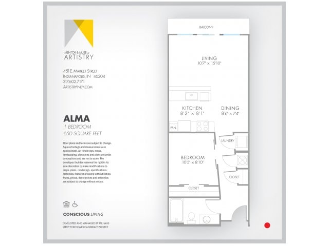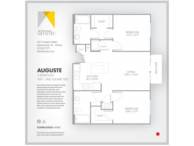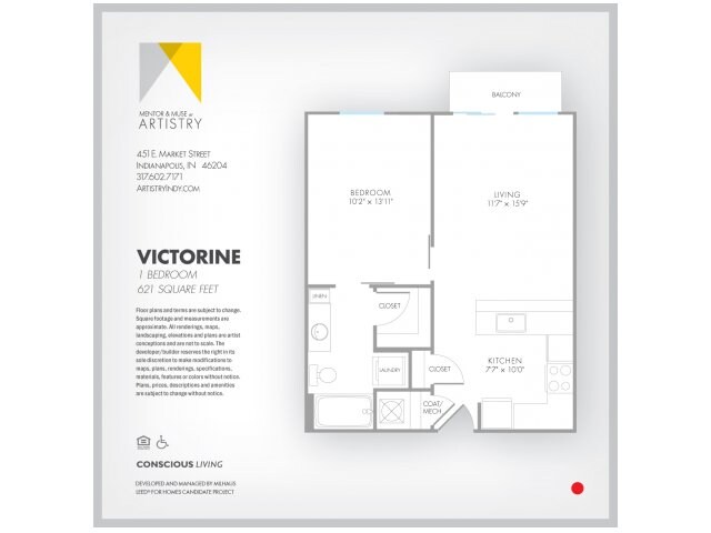 Artistry is a creatively revitalized mixed use campus in the Cole Noble district of downtown Indianapolis. Its architecture, modern features and appreciation for the arts is bound by the community's history of craft and skill. The main building features five stories of urban apartment homes and up to 68,000 square feet of commercial office space. With the addition of Mentor, Muse & Mosaic, the four building campus provides more living options to fit different lifestyles, including eco-suites for those who need minimal space. With a fun and creative atmosphere, Artistry allows your life to become a work of art. For the latest Artistry community news, follow us on Facebook, Twitter & Instagram.