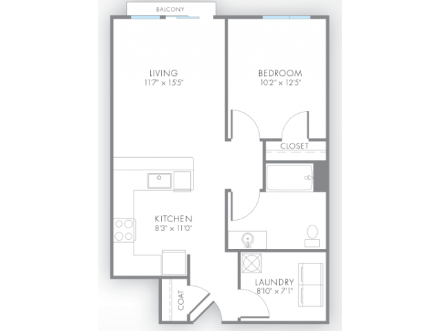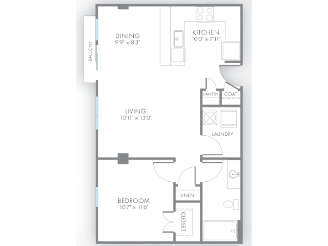 Studio, 1 Bath, 486-504 sq ftAvailable NowModel Gallery
