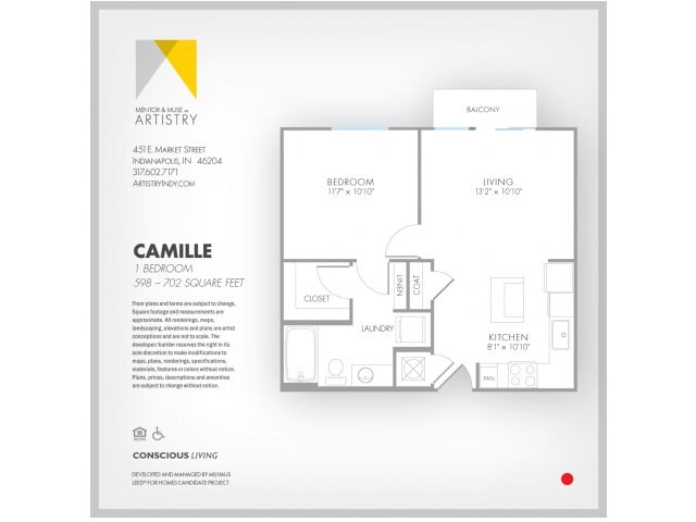 Artistry Indy offers Studio to 3 Bedroom apartments starting from $928 and having 324–1,422 sq ft. Here is the current pricing and availability: