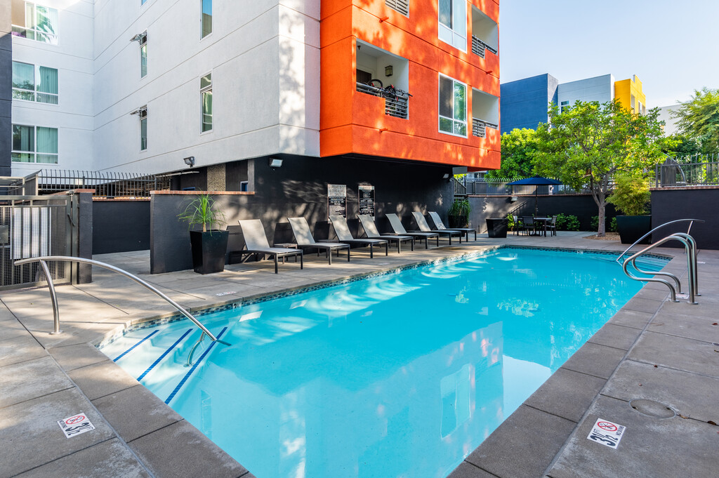 Artists Village Apartments offers modern one- and two-bedroom apartments for rent in the heart of Santa Ana, located within the vibrant Artists Village District and near Santa Ana College, Downtown Santa Ana, and the Santa Ana Regional Transportation Center. Apartments feature in-unit washer and dryer, central air conditioning, stainless-steel appliances, custom cabinetry, and private balconies. Our non-smoking, pet-friendly community features a resort-style pool and spa, cozy firepit, cutting-edge BBQ grills, fully equipped fitness center, package room, and a stylish resident lounge. Discover thoughtfully designed homes in a thriving urban setting—allow us to make coming home the best part of your day!
