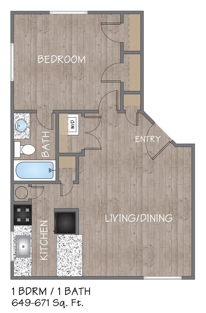 1 Bed, 1 Bath, 649-671 sq ftAvailable NowModel Gallery