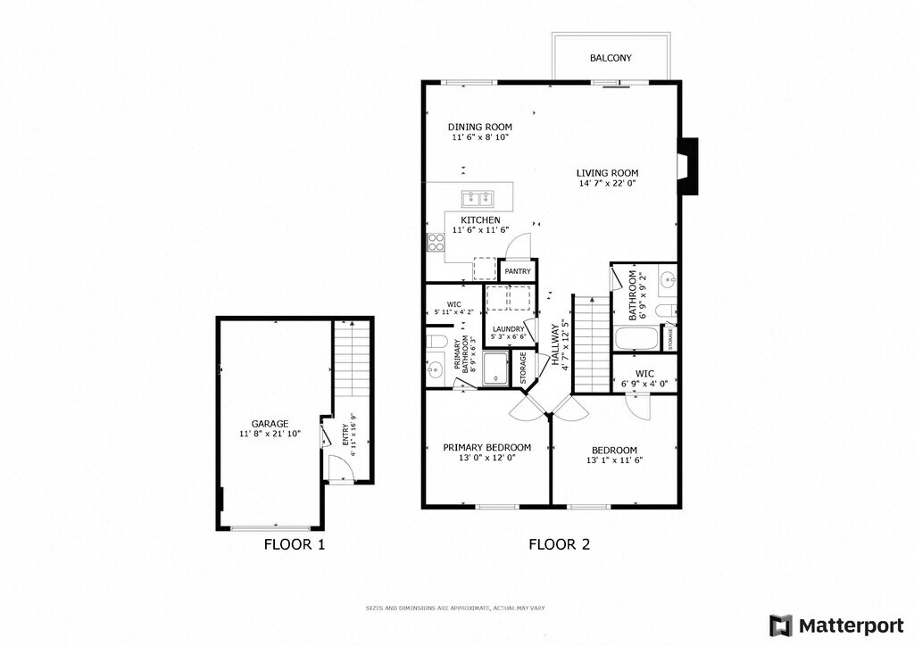 2 Bed/2 Bath, Upper, 1 Stall Att. Garage (14/2B/7) - Floorplan 1 ![]()