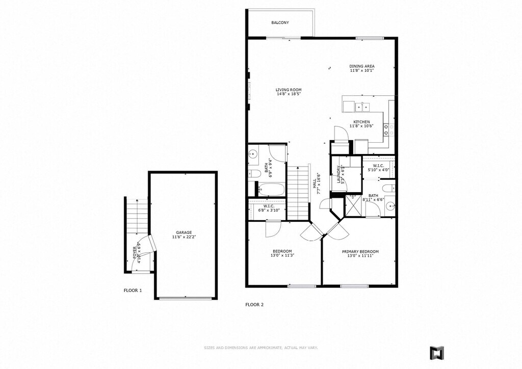 1 Bed/1.5 Bath Loft, 1 Stall Garage (21/1b/5) - Floorplan 2 ![]()