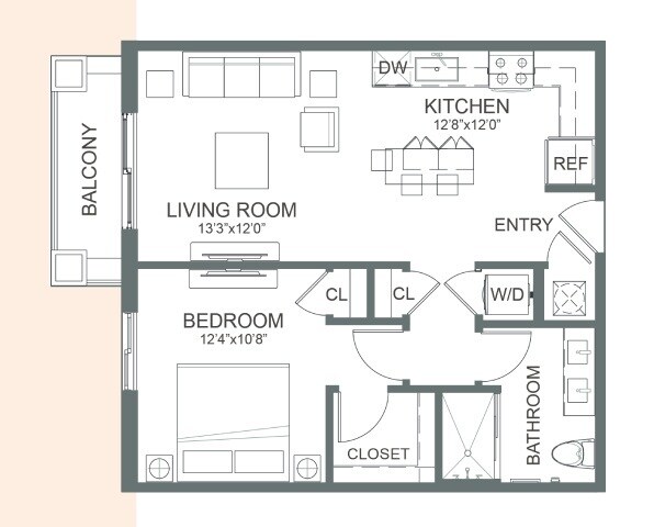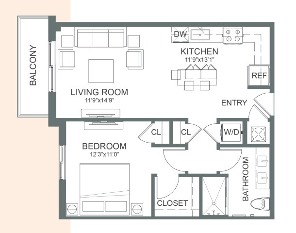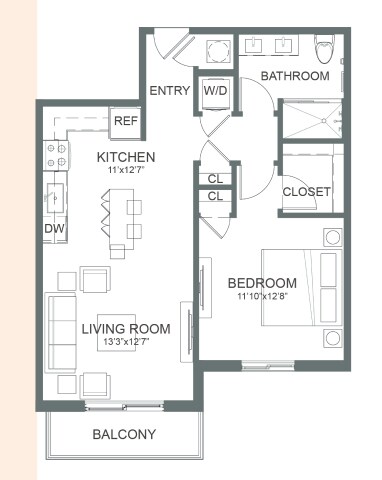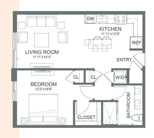 Studio, 1 Bath, 627 sq ftModel Gallery
