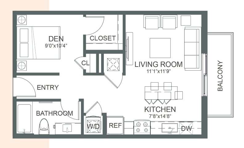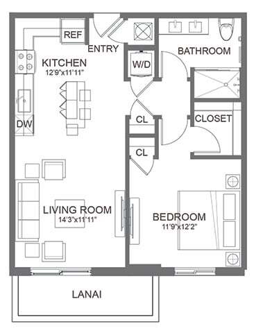 Studio, 1 Bath, 630 sq ftModel Gallery