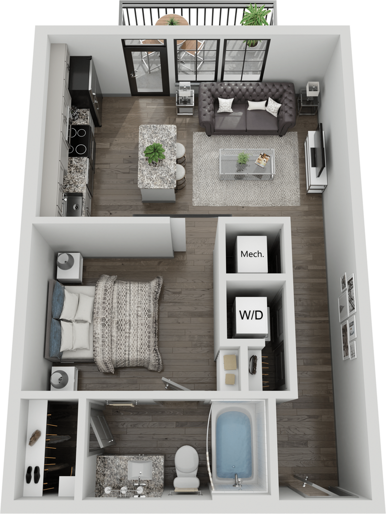 Studio, 1 Bath, 590 sq ftAvailable NowModel Gallery