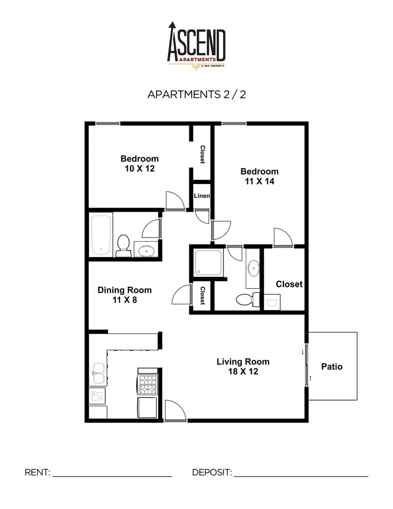 1 Bedroom 1 Bathroom - Floorplan 2 2 Bedrooms