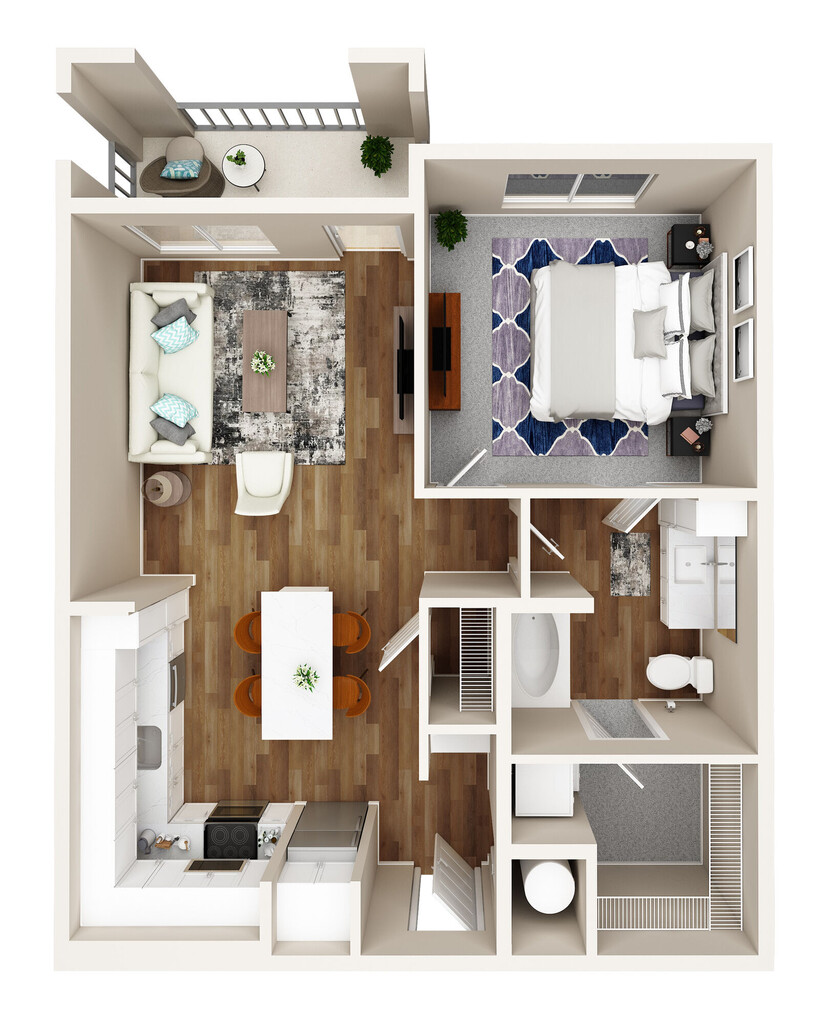 1 Bed, 1 Bath, 747 sq ftAvailable NowModel Gallery