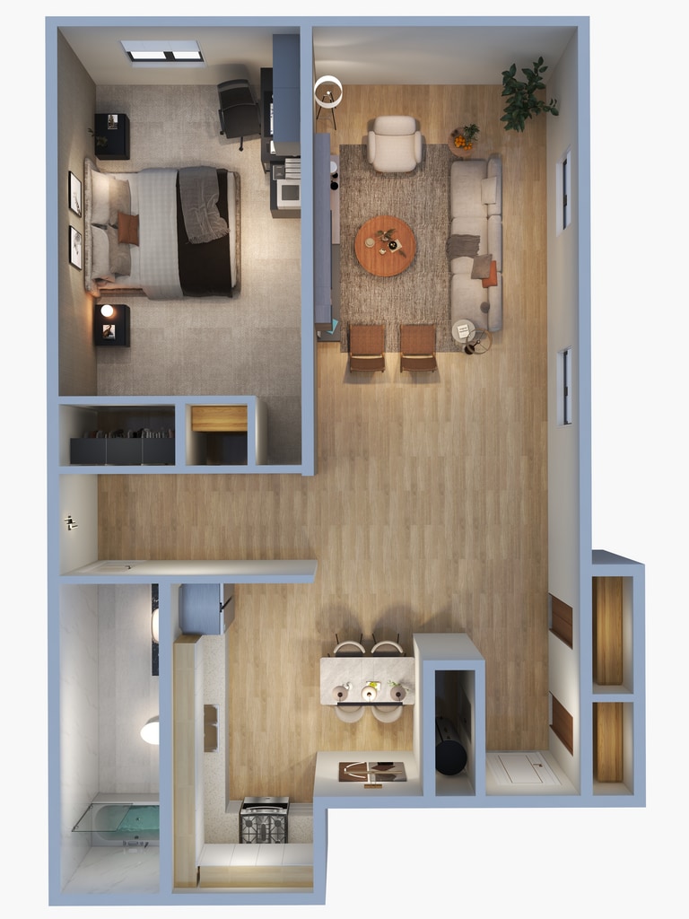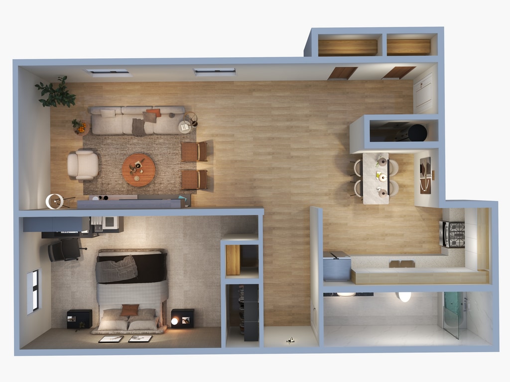 1 Bed, 1 Bath, 690 sq ftModel Gallery