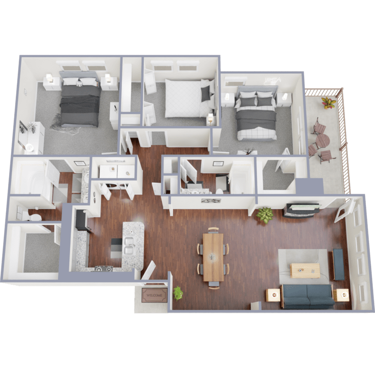 3 Beds, 2 Baths, 1270 sq ftModel Gallery
