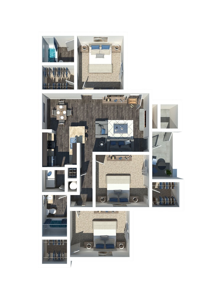 Jasmine - Floorplan 1 Apartment Unit: J119Apartment Model: Jasmine$1,4992 Bedroom, 2 Bath, 967 sq ftAvailable NowApartment Unit: A102Apartment Model: Jasmine$1,7492 Bedroom, 2 Bath, 967 sq ftAvailable NowApartment Unit: D101Apartment Model: Jasmine$1,7492 Bedroom, 2 Bath, 967 sq ftAvailable Now3 Bedrooms