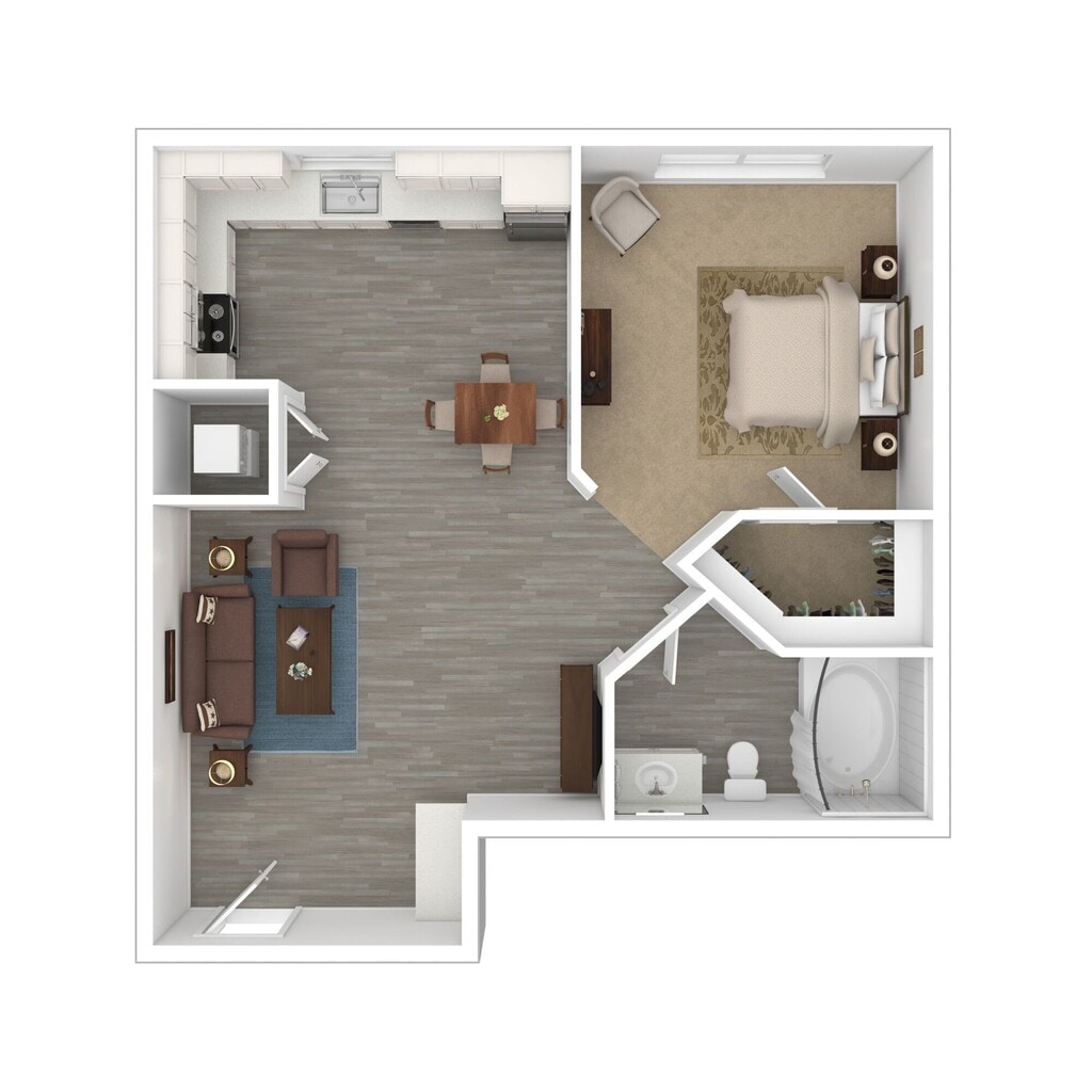 Studio, 1 Bath, 631 sq ftLargest StudioThis is the largest Studio at this PropertyModel Gallery