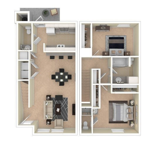 2 Beds, 1.5 Baths, 1292 sq ftAvailable NowLargest 2 BedroomThis is the largest 2 Bedroom at this PropertyModel Gallery