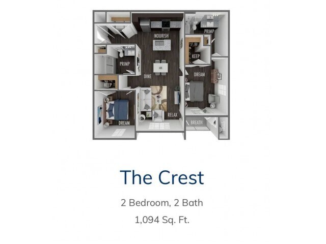 Apartment Model: CrestFrom $1,4992 Bedroom, 2 Bath, 1094 sq ftAvailable Now![]()