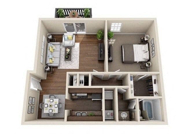 1 Bed, 1 Bath, 709 sq ftModel Gallery