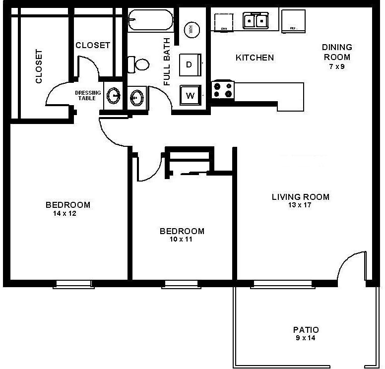 Apartment Model: 2B/1BFrom $9712 Bedroom, 1 Bath, 963 sq ftUnavailable![]()