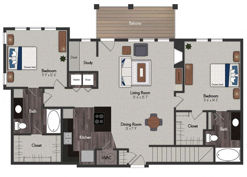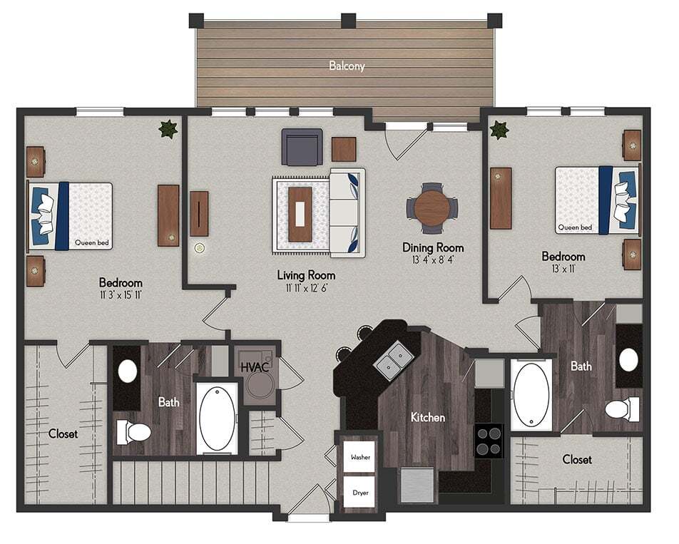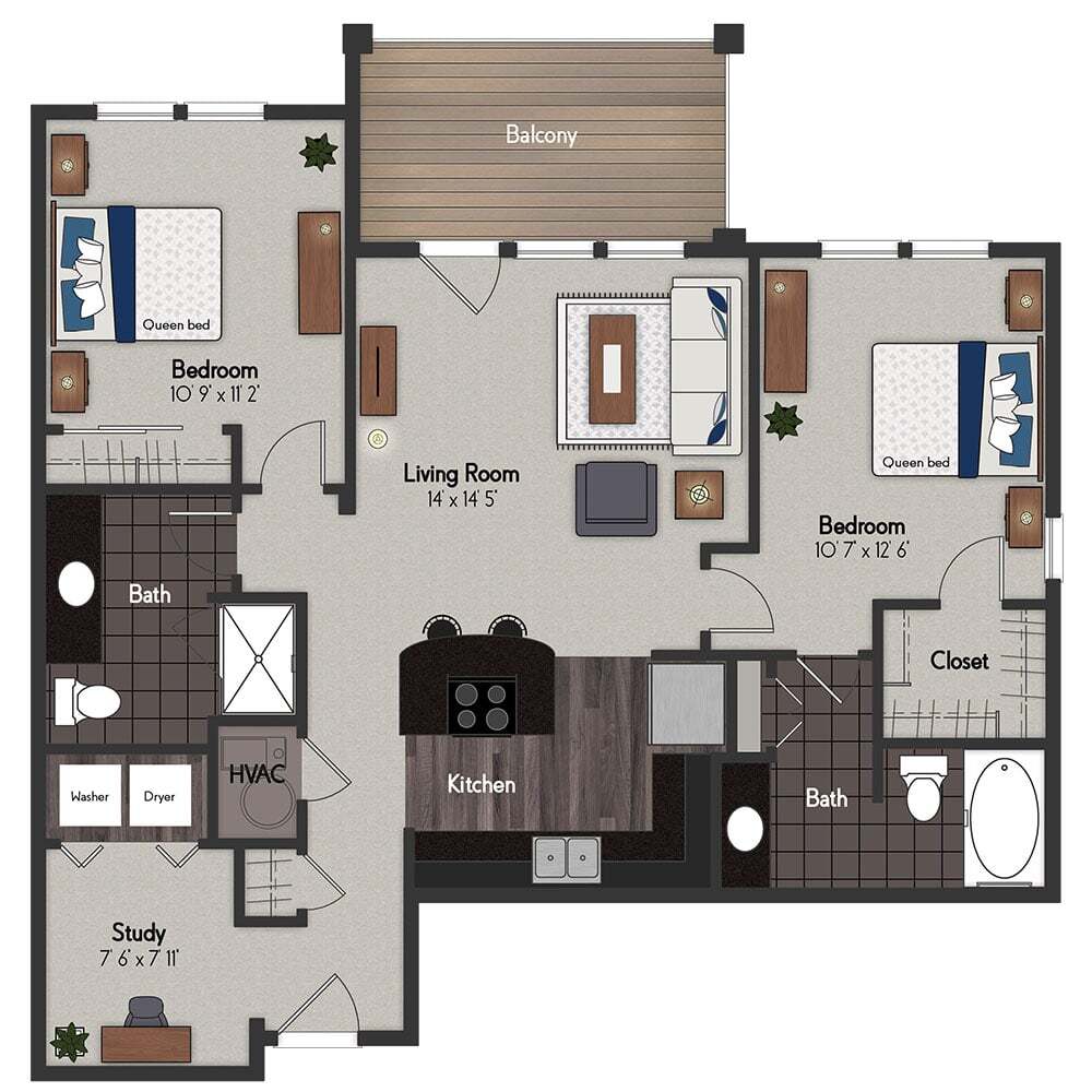 2 Beds, 2 Baths, 1033 sq ftModel Gallery