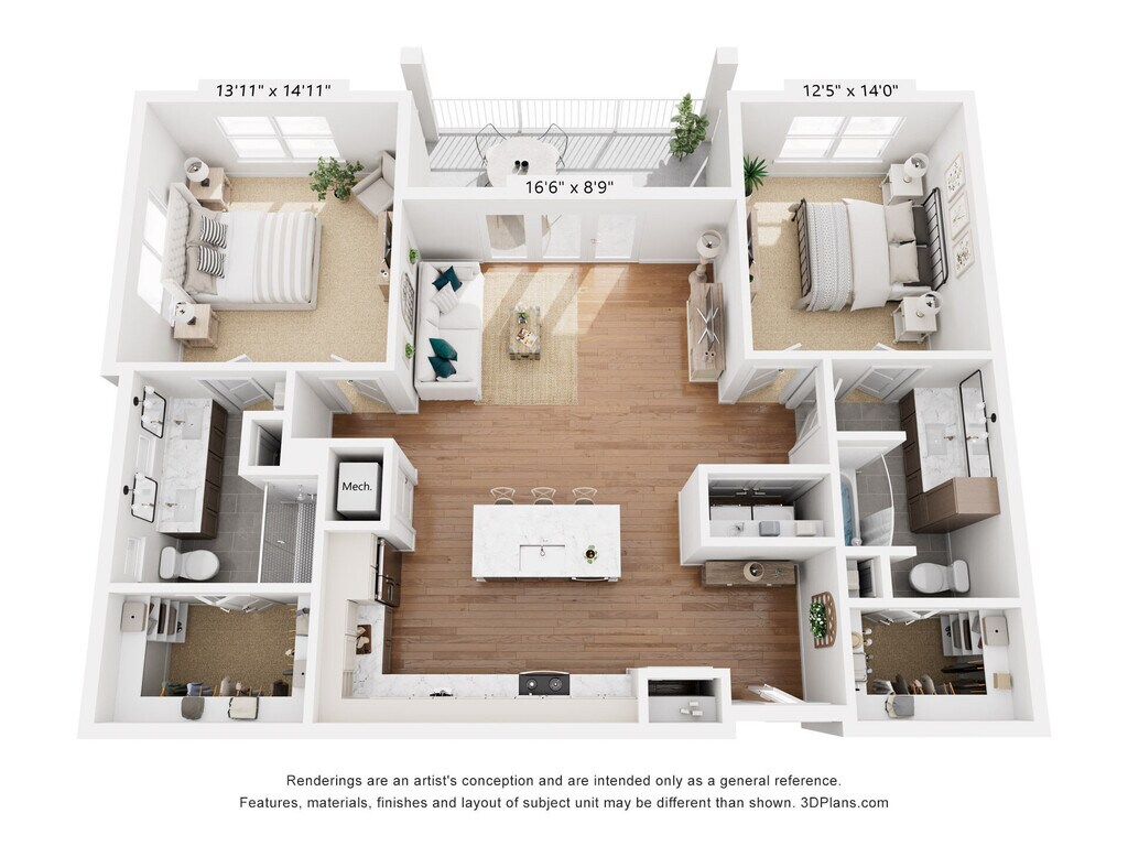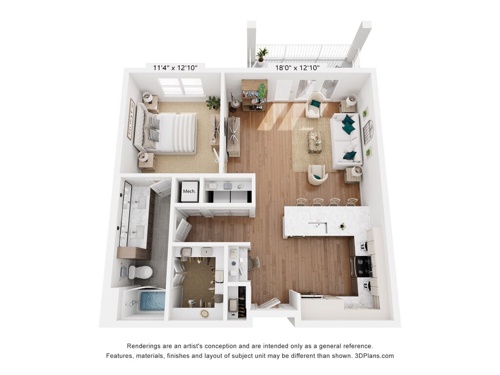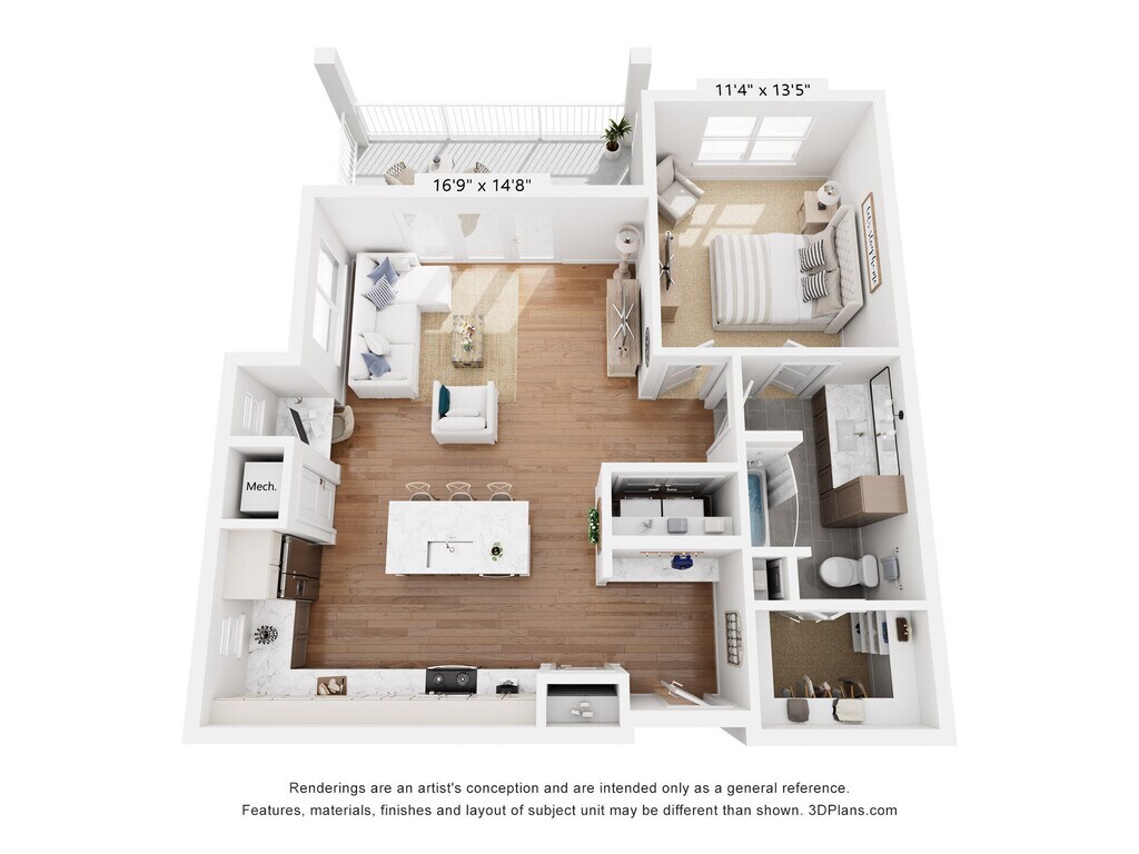Apartment Model: A3From $1,4501 Bedroom, 1 Bath, 787 sq ftAvailable March 2, 2026![]()
