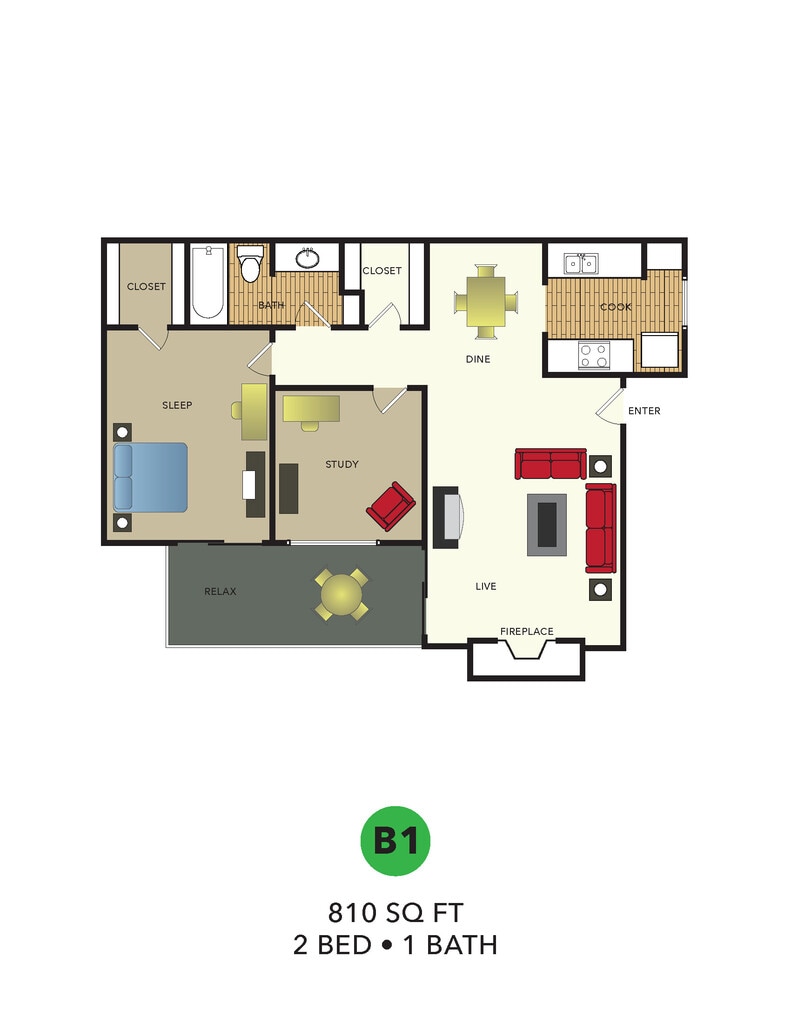 Apartment Model: B12 Bedroom, 1 Bath, 810 sq ftUnavailableB1 - Floorplan 1 Floorplan B2