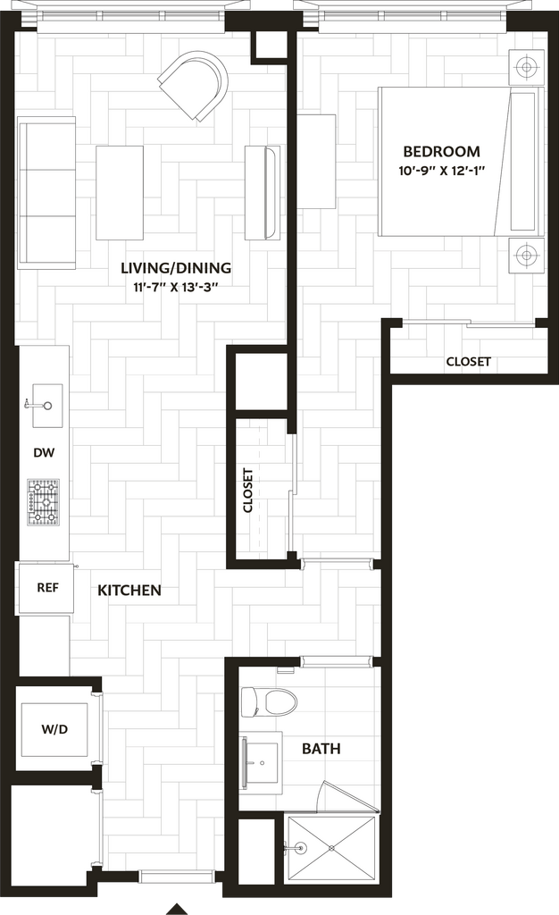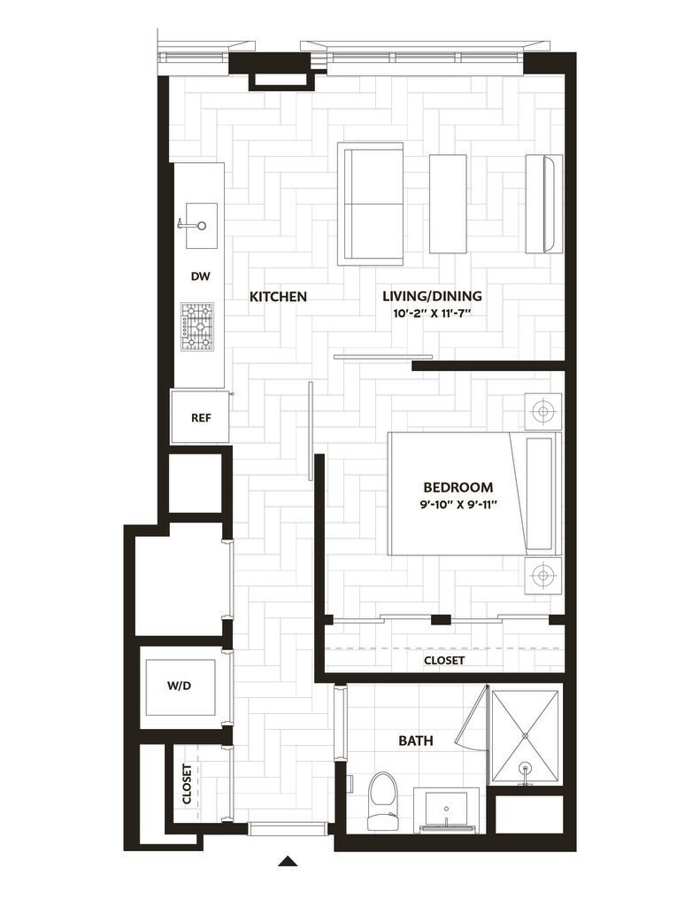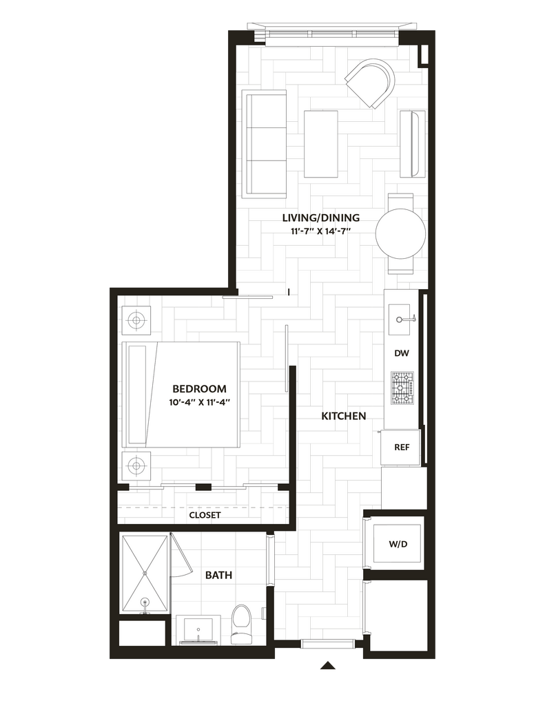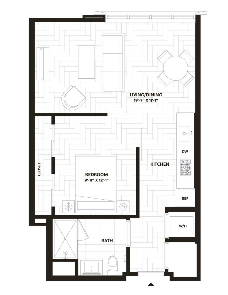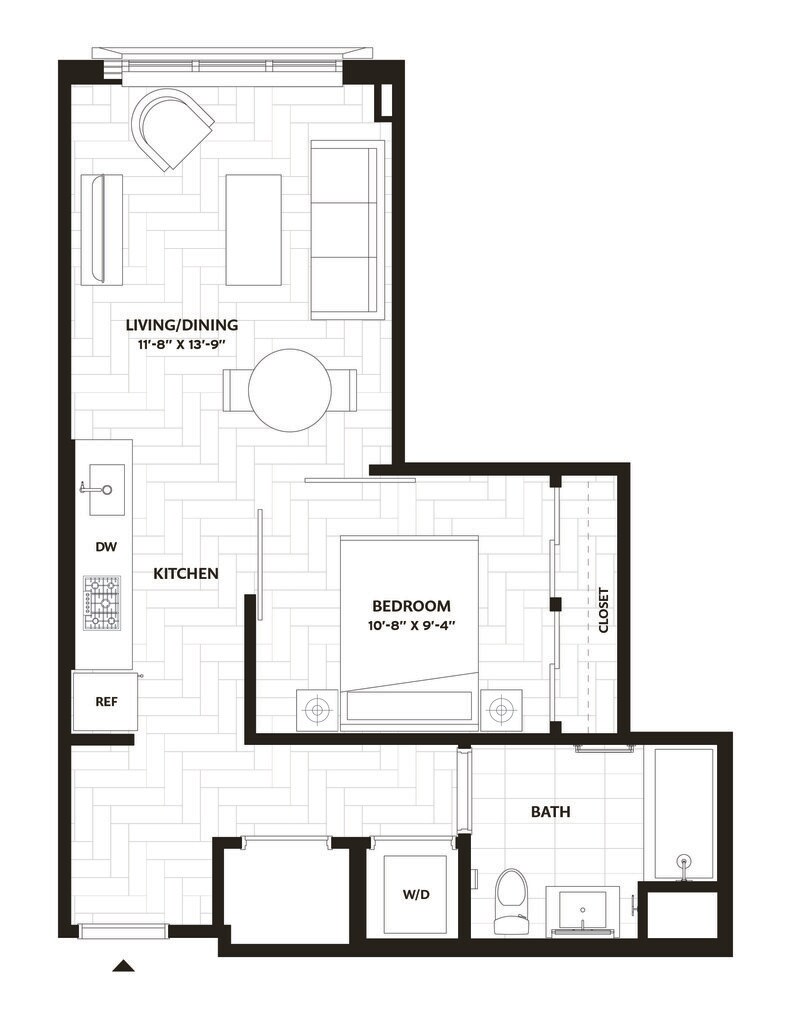 Studio, 1 Bath, 386 sq ftAvailable NowModel Gallery