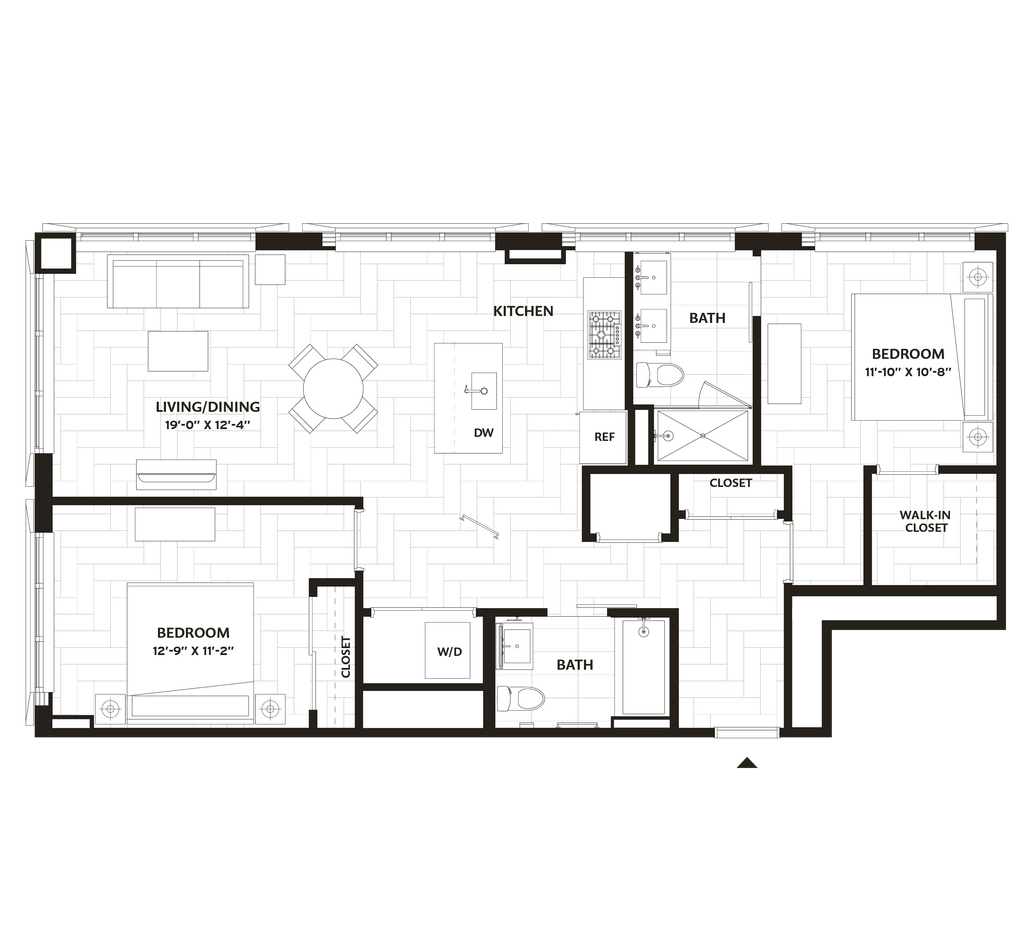 Studio to 2 Bedroom Apartments at Asher currently range from $1,913 to $4,966