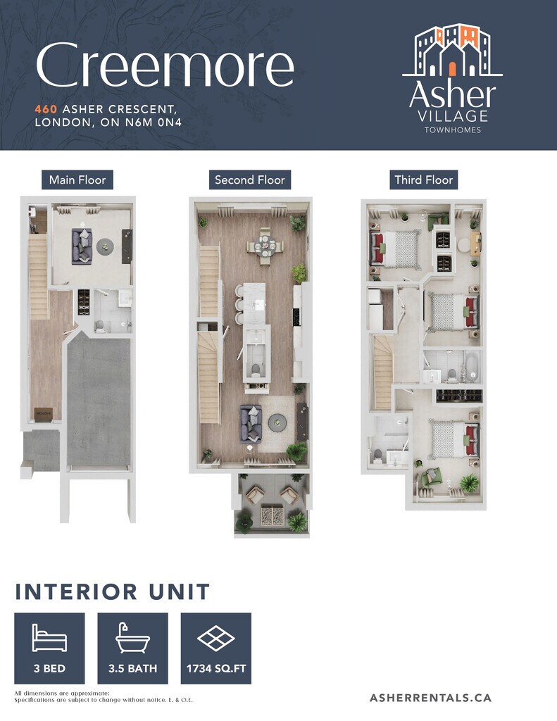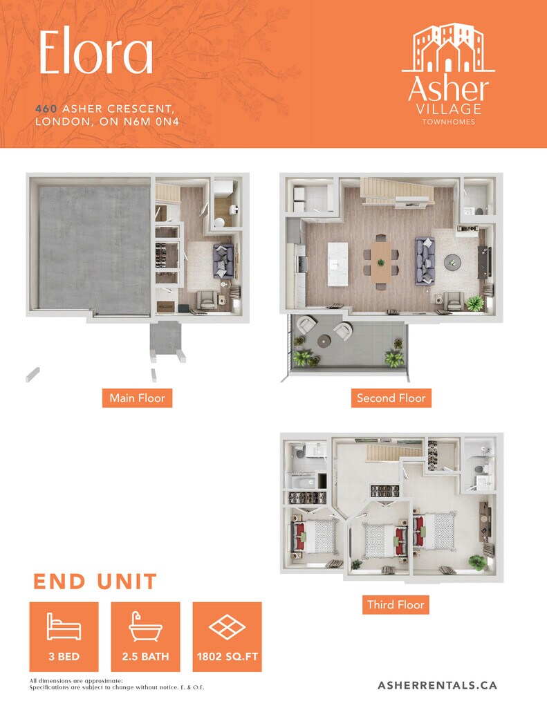 Welcome to Asher Village, a vibrant new rental community in Southeast London, offering modern townhomes and apartments designed for today’s lifestyles. Whether you're looking for a stylish studio, one-bedroom, or spacious two-bedroom apartment, or a thoughtfully designed three-bedroom townhome, Asher Village has the perfect home for you. Spacious 3-Bedroom Townhomes – Two Unique Styles Asher Village features two styles of townhomes, each offering flexibility, comfort, and convenience: Traditional 3-Storey Townhomes – These three-bedroom townhomes include a single-car garage, a flex room that can serve as a home office or extra bedroom, and spacious living areas designed for modern living. Back-to-Back Townhomes – This innovative layout maximizes space, offering a two-car garage, a versatile flex space for a home office, and an open-concept design perfect for families and professionals.