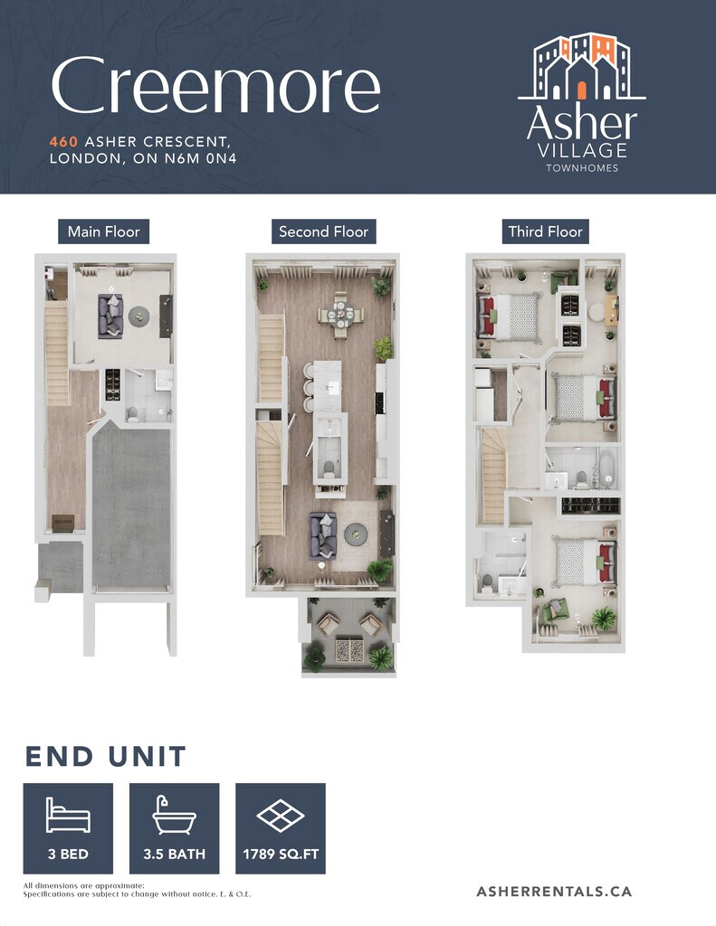 Apartment Model: Creemore3 Bedroom, 3.5 Bath, 1734-1789 sq ftAvailable NowCreemore - Floorplan 1 Creemore - Floorplan 2 Elora