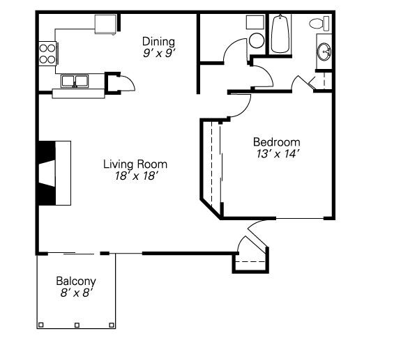 Abbey I & II - Floorplan 3 Apartment Unit: 5447CDMLApartment Model: Abbey I & II$1,4631 Bedroom, 1 Bath, 774 sq ftAvailable NowAran