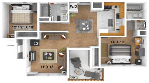 2 Beds, 2 Baths, 875 sq ftModel Gallery