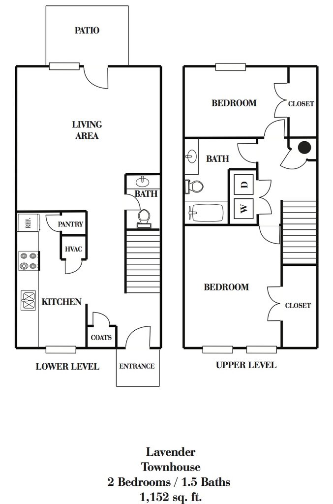 2 Beds, 1.5 Baths, 1152 sq ftAvailable NowLargest 2 BedroomThis is the largest 2 Bedroom at this PropertyModel Gallery